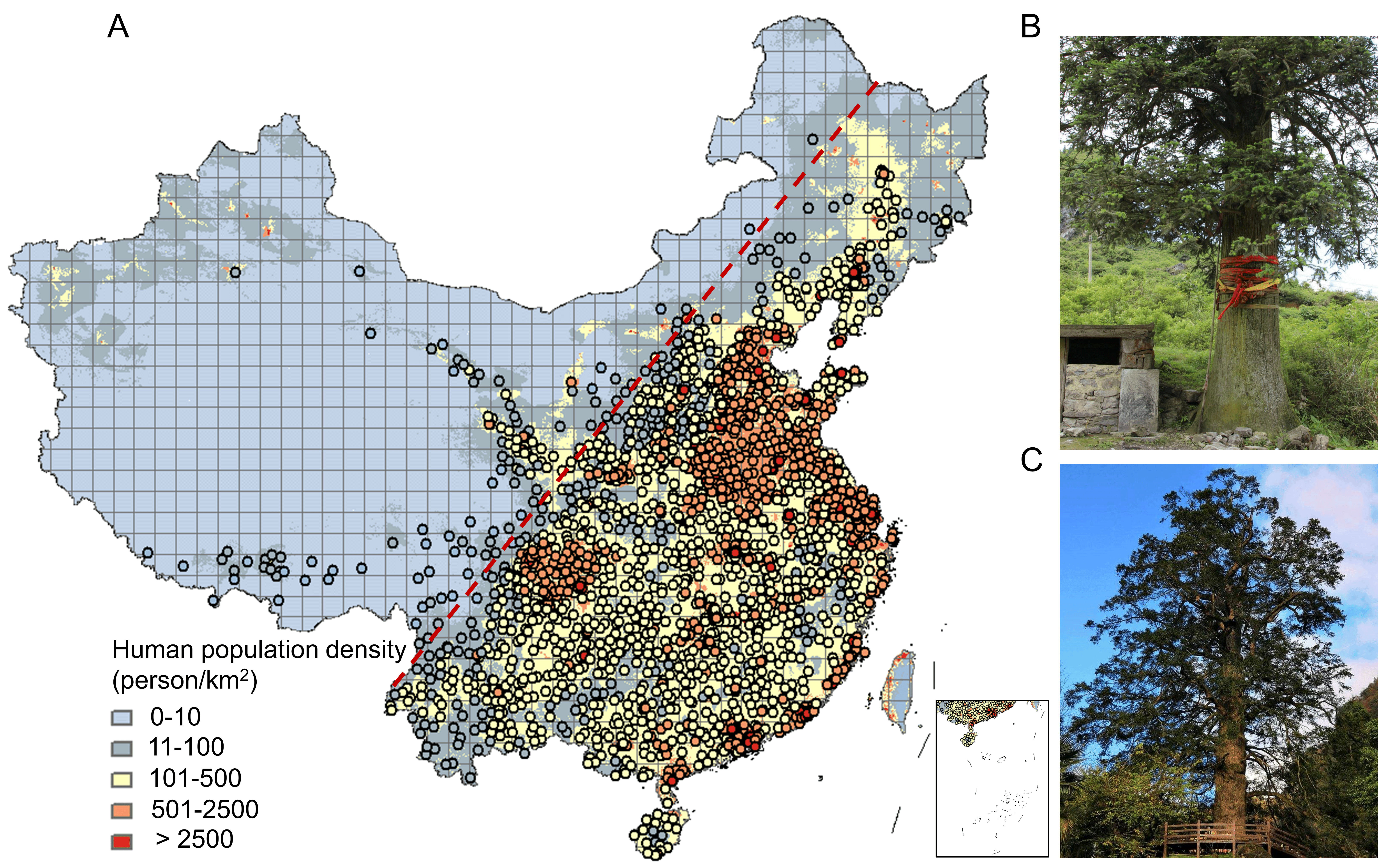 Nature Plants∣唐志尧教授团队和合作者揭示影响人类聚居区古树长期留存的关键因素