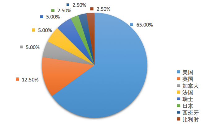 2017年我院毕业生出国人数共40人,占总人数比例的20.94%。出国毕业生中首选国家为美国,共26人,占总留学人数比例的65%。其次为英国,共5人,占总体比例的12.5%。再次为加拿大、法国、瑞士各有2人。日本,比利时,西班牙各有1人。