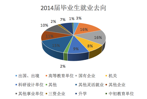 就2014年的数据可以看出,去除灵活就业人数,教育科研机构占总人数比例为25.2%(计入出国深造为28.5%),企业(国有企业与三资企业)占比为26.9%,而机关事业单位占比为17.9%,三者总比例为70%。同期相比,2015年教育科研机构总人数占比为38.3%,企业为38.4%,机关事业单位为17%,三者总比例为93.7%;值得关注的是,2015年的各项就业类别中计入了2014年、2016年中划为灵活就业的类别,因此其占比同期相比较高。总体而言,我院硕博毕业生前往教育科研单位和企业(国企、三资企业)的占绝大多数,还有一定比例选择机关事业单位就业。值得一提的是,从2014~2016年的经验素材中,我们发现香港六合彩开奖直播 的毕业生选择的国企、三资企业在很多程度上仍然与规划设计、地理环境等专业相匹配,在工作内容上有很大可能与教育科研单位相似,在后文中我们将会进一步讨论专业匹配程度的问题。