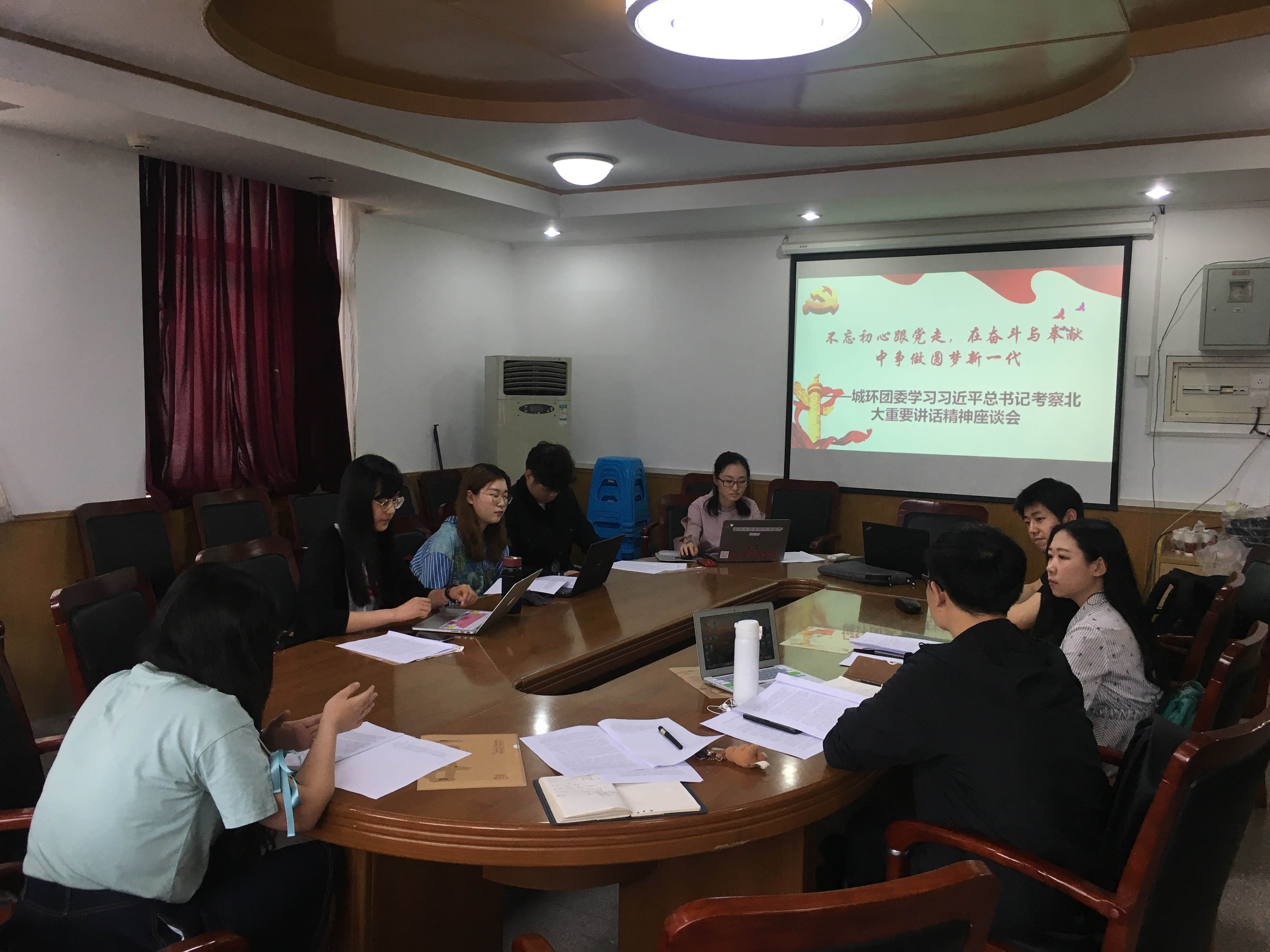 在逸夫二楼3264组织集体学习习近平总书记5月2日在北京大学师生座谈会上的重要讲话精神,学院团委书记王宇凡、团委常务副书记关汉岳,学院团委、研究生会、学生会骨干参与本次学习讨论。 会前,师生一起回顾了“习近平总书记考察北大”的新闻视频和讲话原稿。 图一.回顾习总书记考察北大的新闻视频和讲话原稿 王宇凡系统介绍了校庆期间学校发生的大事,细致入微地回顾了总书记在北京大学考察和师生座谈会的具体安排,指出习总书记六次到北大,两次给北大同学回信,5月2日在北大考察三个半小时,体现了党中央对北京大学的高度重视。王宇凡提到,郝平书记在师生座谈会上用三个北大学生的故事反映北大学生群像中朝气蓬勃、昂扬向上的精神面貌,这些故事与团系统的工作是密不可分的。北京大学不仅有光荣的传统和五四精神,更肩负着新时代的使命,总书记围绕“学校培养什么样的人,怎样培养人”,对高等教育与学校、对当代青年提出的希望和目标是需要“干出来的”。王宇凡谈到了三点最大的感触:第一是追梦需要激情与理想、圆梦需要奋斗和奉献。国家的发展离不开青年的力量,在向总书记的汇报中提到,每年有400多名同学要去祖国最需要的地方,这体现了青年们的家国情怀与奉献精神;第二是总书记离开学校时,同学们自发地高喊“团结起来,振兴中华”,身在现场非常感动和震撼。这不仅是1981年的时代强音,更是新时代的新使命,是北大人的初心;第三,总书记对青年提出了“爱国、励志、求真、力行”的要求,团学骨干要认真思考如何在实践中真听、真信、真感受。 随后,学院团学骨干结合实际工作分享了自己的感悟。王浩舒作为学校合唱团的一员在发展与公益论坛、校庆纪念大会、校庆晚会上均带来了精彩表演,他提到,五四纪念大会上各界校友回校,让自己又一次感受到北京大学兼容并包、继往开来的精神,北大拥有强大的凝聚力,她像一面旗帜,引领社会实现振兴中华的梦想。廖奕楠分享了自己的学习心得,作为学生干部,总书记提出的四个要求正是我们需要具备的基本素质,面对学习与工作,少讲空话,多做实事,而作为新时代的追梦者与圆梦人,需将这八字箴言内化于心,外化于形,不断勉励自己前进。北大的百廿校庆,每一位学生志愿者都是服务者,青年既是追梦者,也是圆梦人,校庆活动让张新悦对志愿服务有了更为深刻的感悟,参与志愿服务,共谱校庆华章,燕园中的每一只“小燕子”都体现了北大青年追梦时的激情和理想,圆梦中的奋斗和奉献。 图二.师生热烈交流 与会师生展开热烈交流,纷纷表示,要在新时代和新使命的召唤下,坚持仰望星空与脚踏实地相统一,做到“知行合一,做实干家”,践行习总书记对北大青年的嘱咐和叮咛,“团结起来,振兴中华”。