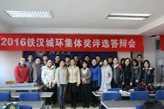 童昕副教授、16级硕士班班主任付晓芳老师、团委书记学工办主任王宇凡老师、学院党委人事办公室刘萍老师、科研外事办公室唐琳老师、研究生教务吴文婧老师、本科生教务宫彦萍老师作为评委嘉宾出席本次活动,活动由城环学工办副主任刘耕蒲老师主持。 铁汉城环集体奖的设立是为了培育集体意识、增强集体凝聚力,表彰团结、互助、有爱、积极向上的集体,从而在全院范围内形成热爱集体、关心集体、积极开展集体建设的良好氛围,从2011年开始设立,一共举办过3次评选活动。今年在学院的大力支持下和同学们的积极参与下,再次启动了铁汉城环集体奖评选活动。 活动开始以来,得到全院同学的积极参与,最终进入答辩环节的17个集体分别是14级生态地科班、城环羽毛球队、14级博士党支部、14级博士班、129核心团队、城环慢垒队、城环排球队、15硕士党支部、文县实践团、城环男篮队、14环科班、城环学生会部长团、城环研会部长团、“燕南北侧户外空间改造计划”课程小组、城环辩论队、丹霞山实践团、中国大学生环教教育基地志愿者团队。 在答辩过程中,各个团队展现出了自身独特的风格与团队精神。其中14级生态地科班着重强调了自身野外实习经历;城环羽毛球队以顽强拼搏为主题,逐步从低谷中走出,迈入高峰;14级博士党支部和14级博士班重点介绍了丰富的活动和制度创新方面的突出贡献;129核心团队每年对于学院129活动的大力支持;城环慢垒队则是以传承、记忆与归属为核心理念;城环排球队以家诠释了集体;15级硕士党支部以又红又专、积极参与的党支部为目标;文县实践团给文县的孩子们带去了鼓励和欢笑;城环男篮队向我们展示了严格的训练计划;14级环科班另辟蹊径,展示了班级的五个“最”;城环学生会部长团是一个既能玩又能工作的集体;环教基地志愿者团队不改初衷,十年环教,一见青心,传播环境保护理念;城环研会部长团各司其职,团结一致;“燕南北侧户外空间改造计划”课程小组以上课为契机,以比赛为磨练,积极探索实践的真知;辩论队以多元文化为核心,全面提升队员的综合素质;丹霞山实践团以脚步丈量土地,行走在山河间。 2016年铁汉城环先进集体奖将评出2个城环标兵集体,4个城环先进集体,6个城环优秀集体,最终结果将于12月22日城环元旦晚会上揭晓并在晚会现场举行颁奖仪式。