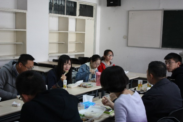 自然地理学专业师生午餐会在逸夫二楼3358教室成功举行。王红亚、赵淑清、周丰、彭书时、蒙吉军等五位老师与2016级自然地理专业的五位同学就专业和生活等方面的问题进行了广泛的交流。 午餐会当天,老师们纷纷提前来到了3358专业教室并分发午餐,等待同学们下课归来。 当同学们都到齐,午餐会也就正式开始啦。首先,蒙吉军老师向今年刚刚进入自然地理学专业的五位同学表示热烈欢迎!他简要介绍了我院自然地理专业的光辉历史、专业特色、发展现状及教师的组成结构,并希望同学们未来在自然地理学专业学有成就、生活快乐! 随后,老师和同学分别进行了自我介绍,发现同学们真是来自五湖四海。大家一边吃着简洁而美味的午餐,一边聊起各自的成长经历,气氛十分融洽。 午餐会上,老师们详细询问了同学们在生活、学习中遇到的各种困难,并征求了同学们对于专业教学和本科科研的意见和建议,老师们都希望能尽可能地为同学们提供更多的帮助。其间,师生们还就对自然地理专业的认识进行了深入的沟通,让同学们收益匪浅。 午餐会结束时,大家集体留念,并表示今后要组织更多的师生交流活动,进一步增进专业老师与同学们之间的相互了解与沟通,为自然地理专业同学的成长营造更为优越的条件。
