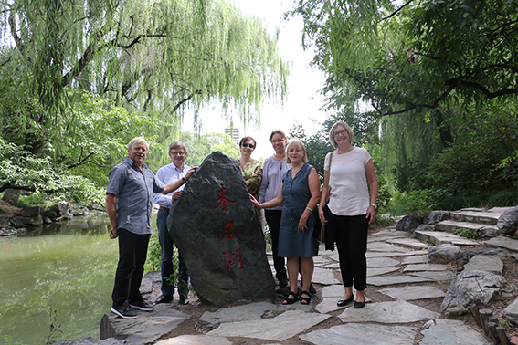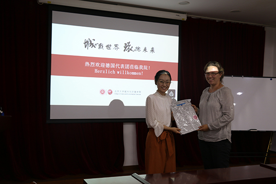 在教学、科研和环保志愿工作方面取得的成绩。德国国际青少年工作专业服务机构项目协调员Kristina女士对学院的热情接待表示感谢,并介绍了机构在推动青少年教育、个人发展和青年环保志愿活动等方面的工作。代表团其它来宾也分别介绍了各自机构在青少年工作和可持续发展方面的主要项目及工作。 随后,学院学生代表张志皓同学(中国大学生环境教育基地志愿者)介绍了“林歌”项目在校园废纸、军训衣物回收等方面所做的主要工作;童培峰同学(本科生科研学生代表)介绍了学院在本科生科研教学工作的培养项目和学术研究成果。 会后,金鑫和王宇凡与代表团一行人互相赠送纪念品并合影留念,希望双方进一步推动务实合作和交流工作。双方在秋日的阳光中参观北京大学校园,交流活动在友好的氛围中圆满结束。