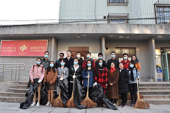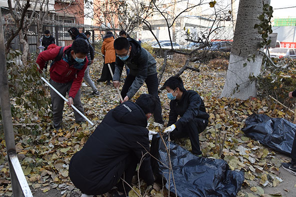 党委副书记张新平、团委书记王宇凡参加此次活动。 图一.活动合影 下午两点钟,同学们在北京大学西门准时集合,前往畅春园社区。经过居委会工作人员的耐心指导后,发放手套、口罩、耙子、扫帚,同学们不怕苦不怕累,开始了落叶清扫。面对堆积如山的落叶,同学们分工合作,有人撑起塑料袋,有人拿起工具打落挂在树上的落叶,有人徒手将落叶捡起放到袋子中。虽然扬起灰尘,天气寒冷,但是同学们吃苦耐劳并乐在其中,老师们也参与到清扫落叶的活动中来,经过大家的共同努力,落叶慢慢变得稀少。最终街道整洁如初。 图二.清扫落叶活动进行中 附近的居民见到此情景,纷纷露出欣慰的笑容,称赞我们是热心为人民服务的社会主义好青年。同学们在活动结束后都积极分享自己的心得体会。夜幕降临,畅春园也被清扫得干干净净,同学们在欢声笑语中回到校园,留下难忘的回忆。 图三.同学们分工协作清扫落叶 经过这次清扫活动,大家都深刻感受到维持环境的不易,先辈们为我们创造现在幸福生活的不易,我们只是在冷风中进行了三个小时的落叶清扫活动就已经累得汗流浃背,革命先辈们风里来雨里去,不怕苦不怕累地坚持斗争,在那段峥嵘岁月中奋勇向前、自力更生,才为我们今天的社会主义现代化国家的建立奠定了坚实基础。而我们更应该传承这种大无畏和吃苦耐劳的精神,这是中华民族精神瑰宝,是无产阶级取得胜利的关键与核心,是社会主义建设中新时代青年必不可少的精神食粮,更是我们成为合格的社会主义接班人的首要前提。 图四.同学们用手捡拾落叶 同学们更是感受到了热心服务、一心为民的精神力量。在习近平主席的领导下,我们新一代青年更应该本着为人民服务的精神,将党的精神贯彻落实下去,为构建和谐社会贡献自己的一份力量。人们都说“被需要是一种幸福”。这感觉我们是在真正的做志愿服务之后才获得和理解。把志愿服务当作自己的生活内容和生活方式,时时刻刻去帮助需要帮助的人,做奉献爱心的事,这就是当一名志愿者的真谛。我们应该更加努力的去服务社会,为更多的人送去温暖,让更多的人看到希望。 撰稿:朱晗 供图:彭若男、张孝琰 审核:关汉岳