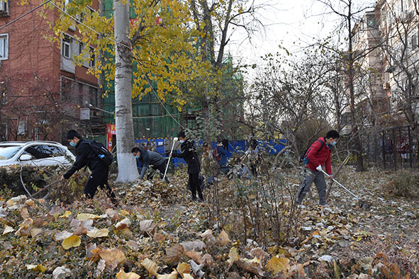 爱国励志新青年,城心城意扫落叶 ——香港六合彩开奖直播 和燕园街道共同举办畅春园落叶清扫活动