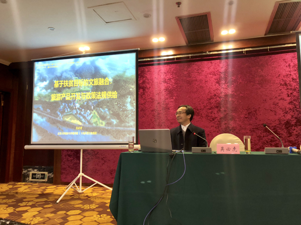 旅游研究与规划中心主任吴必虎教授受邀在文化和旅游部西部地区及集中连片贫困地区文化产业经营管理人才培训班为西部文化产业经营管理人才授课《基于扶贫目标的文旅融合:旅游产品开发与政策法规供给》。 吴必虎教授授课 吴必虎教授讲到文化与旅游部的成立,为文旅融合建立了政治机遇,文化产业与文旅融合成为西部地区和集中连片贫困地区经济发展、社会交换的主要途径。他认为遗产活化是文化遗产保护和利用的主要方法,也是文化产业发展、投资、经营和IP打造的主战场之一。乡村地区保留了更多的传统文化价值,旅游活化具有大量发展机会,介绍了螺溪谷乡村扶贫案例。他指出目前仍然存在许多过时的政策法规,面向西部和贫困地区的文化产业发展,需要提供更多的产业发展政策和法规变革。 文化和旅游部西部地区及集中连片贫困地区文化产业经营管理人才培训班于2018年11月13日在重庆开班,共有来自全国21个省、市、自治区及新疆生产建设兵团的135位文化产业经营管理人才。 培训课现场