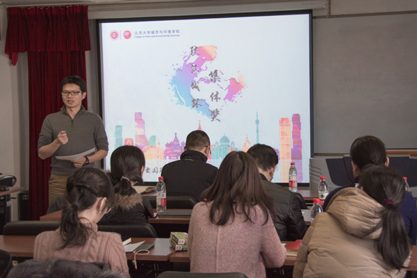 举办了“奋进新时代,城环新青年”2018年度铁汉城环集体奖评选活动,以奖励在组织建设及团队发展方面有突出成绩、对成员的发展起到积极引导作用、在学院得到广泛认可并产生积极影响的先进集体。集体奖评选是学院学生思想政治教育的品牌工作,引导全院学生在集体活动和集体建设中,强化归属感与认同感,促进学生集团式的成长。 活动于11月初正式启动,得到全院同学的广泛参与和积极响应,班级、团支部、党支部、运动队、助理团队、学生会、社团等23支集体队伍进入评选环节,在“北大城环”微信平台进行了为期三周的风采展示。各集体图文并茂、独具风格的生动事迹得到了院内外千余师生的转发和点赞。 12月7日上午,“铁汉-城环奖”集体奖答辩会在逸夫二楼3459会议室举行。学院教师和班主任代表张新平、刘雪萍、朱彪、付晓芳、王宇凡、唐琳、宫彦萍、于佳鑫、葛强、柴腾担任评委,数十名学生代表也参加了活动。 图一 史毅夫代表学院网球队答辩 图二 邓鲁川代表2015级本科城规班-团支部答辩 答辩会上,各团队展示了集体建设中的自身特色与突出成绩。2015-2018级本科生党支部介绍了党员培养与发展、理论学习与实践、社会服务与奉献等方面的党建特色工作;2015级本科环科班-团支部、2016级本科城规班-团支部、2017级本科资环班、2018级本科1班-团支部等11个班级-团支部不仅从班团成绩、班团活动、出彩人物等方面展示了队伍风采,也结合各自的专业特色展示了前往野外、企业、科研院所等地的实习活动,让大家感受到实践中的专业风采,体现出城环青年走向城镇乡野、用脚步丈量中国大地的精神;学院研究生会和朋辈助理团队作为服务同学、服务学院的的中坚力量,用自己的热心、细心和责任心默默为大家奉献,学生会新媒体部、企划宣传部则通过精心策划的推送和海报,向学院师生传达最及时的资讯;学院排球队、网球队、羽毛球队、足球队、慢投垒球队、乒乓球队等6支体育运动队在答辩中展示了过去一年中的不俗战绩,更展现了城环人坚韧奋斗的品质以及学院师生热爱运动、热爱生活的积极向上氛围。 此外,各个参评集体还都分享了自己对总书记的四点希望以及新时代青年形象的认识与理解。2016级本科城规班-团支部认为,新时代青年要牢记总书记提出的四大希望,应该时时想到国家,处处想到人民,把建设祖国、发展城乡作为自己的责任,始终关注社会、扎根人民。在学习中始终求真,坚持知行合一,立鸿鹄志,早日将自身本领投入到城乡发展建设之中。慢投垒球队结合球队特点,认为“爱国”是要强身健体,为祖国健康工作五十年;“励志”要磨练技术,为学院争光;“求真”是将科学、专业的理论作为训练的基础,同时虚心向前辈,老师请教;“力行”是将所学的知识以及训练的成果,在场上真正发挥出来。学生会新媒体部认为新时代青年要把个人的小梦想积极融入到国家的大梦想之中,这样才会握住时代的脉搏,为民族复兴添砖加瓦。 图三 朱彪老师点评 图四 张新平老师点评 2018年“铁汉-城环奖”集体奖活动将评出2个城环标兵集体,4个城环先进集体,7个城环优秀集体,最终结果将于12月22日城环元旦晚会上揭晓并在晚会现场举行颁奖仪式。 图五 参会师生合影 城环集体奖评选为城环学子提供了一个展现自身价值、锻炼提神自我的平台。在每个集体的风采展示和答辩环节中,展现出每一个城环集体的温暖与力量。祝愿我们所有同学能够一如既往地努力拼搏,成为 “爱国、励志、求真、力行”的新时代青年;能够在集体中接受锻炼、收获成长,同时又能回到集体中发光发热,实现价值;能够把个人的理想追求融入到国家和民族的事业中,成为实现中华民族伟大复兴的生力军,肩负起国家和民族的希望,共同出彩,携手成长为圆梦新一代。