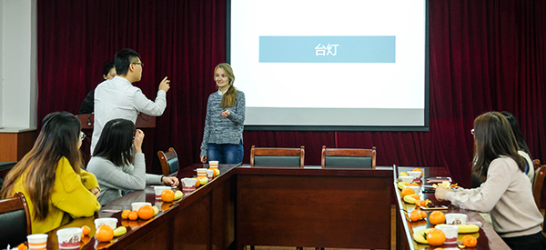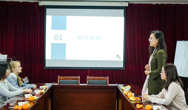 留学生新年联欢会暨国学分享会在逸夫二楼3301会议室举行,本科生教务办公室宫彦萍老师、研究生教务办公室于佳鑫老师、行政办公室刘萍老师、许文君老师、学院留学生以及部分研究生出席了本次活动。 图1 活动现场布置 图2 活动准备书籍 活动伊始于佳鑫介绍了我院目前的留学生招录情况,其中在读本科生5名,研究生3名(含2名硕士,1名博士)。于佳鑫还表示,本次活动举办目的,一是为了在新年到来之际给远在异国他乡求学的留学生们一份温暖,二是提供一个交流平台,让留学生们与中国同学更多地交流学术和中国文化。随后宫彦萍对远道而来的留学生表示热烈欢迎,并希望借此机会增进留学生同学间及师生间的交流与沟通。 图3 于佳鑫老师介绍本次活动情况 图4 宫彦萍老师欢迎大家的到来 随后进入正式的联欢环节,由我院18级硕士研究生孙福月主持,与会者以自我介绍接龙的方式对彼此进行了简单的了解,接下来大家以自由组合的形式玩起了你画我猜游戏,台上的游戏参与者,无论是初次见面的同学,还是日常工作在一起的老师均配合默契,现场欢笑声不断;留学生在此环节中表现出优异的中文功底,多年的中国求学经历使他们的中文炉火纯青,对于谜底的意思掌握非常到位,只是对一些四字成语和传统名词的掌握还稍欠火候。 图5 留学生进行自我介绍接龙 图6你画我猜游戏 游戏过后进入读书分享环节,为促进留学生对中国国学文化的了解,本次活动主办方选择了《三国演义》与《人间词话》,由研究生代表孙福月、封斯文同学分享读书心得。孙福月对《三国演义》中不同朝代主要人物命运、性格特征做了概括梳理,并以草船借箭、桃园三结义两个典型故事为例做了简要介绍与推荐。封斯文从写作背景、作者简介引入,对《人间词话》的主题、核心说以及三种评判标准,经典语句展现做了介绍与推荐,以期能引起大家的阅读兴趣,分享过后,留学生们对分享内容进行了交流讨论。最后,全体合唱了中文歌曲《朋友》,在悠扬的歌声中本次活动拉下了圆满的帷幕。 图7 《三国演义》读书分享 图8《人间词话》读书分享 图9 全体人员合影留念 活动结束后,留学生们纷纷表示了对此次活动的喜爱与惊喜,有留学生表示希望以后工作可以留在中国,期待学院组织企业参访等相关主题的活动,希望以后能有进一步交流的机会。本次活动拉近了留学生之间以及师生之间的距离,促进了留学生对中国国学文化的理解,也使学院了解到留学生的需求,有利于学院为留学生同学提供更好的环境和服务,吸引更多优秀人才来我院深造。 撰稿:封斯文 图:安洁