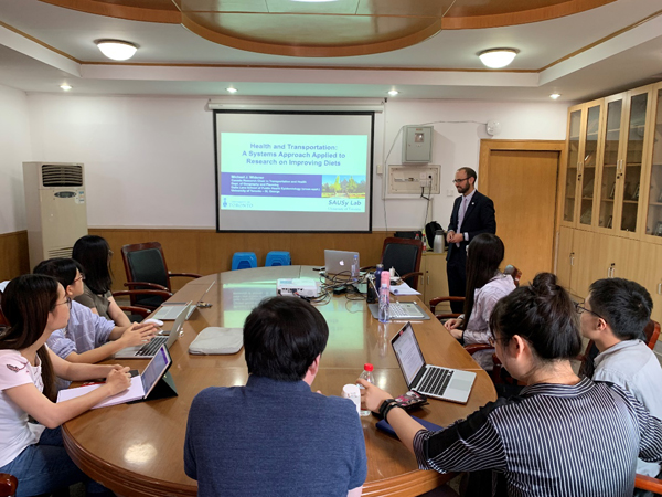 ,与柴彦威教授研究团队及我院师生开展学术交流活动。Michael Widener博士是多伦多大学地理与规划系教授,加拿大交通与健康研究主席,同时担任TRB委员会(环境正义&社会经济因素)委员,以及欧洲通讯和交通出行研究网络(NECTAR)的联合主席。Widener博士的研究主要集中在城市交通系统如何影响健康行为及表现。 图1 Michael Widener博士介绍其研究 Michael Widener博士首先进行题为“Health and Transportation: A Systems Approach Applied to Research on Improving Diets”的讲座。Michael博士在讲座中提出,关于健康和城市交通系统的研究有很长的历史,但很少研究关注健康与城市交通系统的关系。交通系统对健康和健康行为可以分为直接影响和间接影响,包括对物理环境的影响、对健康行为空间的影响、对道路死亡率的影响等。随后,Michael博士介绍了目前其研究组正在进行的研究,其研究以加拿大三个地区为案例地、以家庭为单位开展时间利用日志调查,通过活动序列划分研究样本的日常活动模式,研究食品环境、饮食行为和健康之间的复杂关系。 图2 Michael Widener博士与在座师生讨论交流 Michael博士汇报结束后,在场师生就Michael博士的研究进行了热烈的讨论,包括城市交通系统和健康问题研究的创新性、以家庭为单元的数据收集方法、家庭责任分工与个人活动序列的关系、时间利用与出行行为的关系等。Michael博士指出,以往关于城市交通系统、健康食品零售店与居民健康的相关研究没有得出一致性结论,原因在于家庭视角的缺乏。Michael博士对智慧城市、采用智能设备采集个体时空行为数据等也提出了自己的看法。柴彦威教授与张艳博士还对Michael博士的研究在中国的应用可能进行了探讨,就中国快餐店(如KFC等)的空间分布和居民的就餐行为进行讨论,提出了未来可能的研究方向。 图3 陶印华硕士介绍研究组研究成果 随后,陶印华同学介绍了目前柴彦威教授研究组关于时空间行为与健康城市相关的研究成果,包括时空间行为与健康生活方式、体力活动与居民自评健康、基于个体移动性的噪音与空气污染暴露等,Michael博士就其感兴趣的部分向研究组同学提问并进行讨论。李春江同学介绍了利用结晶生长模型和GPS数据划分15分钟步行可达生活圈的方法,并与Michael博士交流了生活圈划分的技术路径。 图4 李春江硕士介绍生活圈划分方法 最后,柴彦威教授对讲座内容做整体总结,并向Michael博士表达了在未来开展更多学术交流和合作的希望。在未来,北京大学将与多伦多大学进行学术会议交流、研究生联合培养、国际合作和国际比较研究等活动,促进两校地理学科的共同发展。