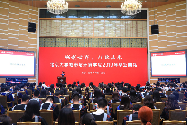 2019届学生毕业典礼在英杰交流中心阳光大厅成功举行。学院院长贺灿飞、副院长李双成、副院长金鑫、党委副书记张新平、院友代表李其林以及学院班主任、任课教师、行政教辅代表出席了典礼活动,参加典礼的还有2019届180名本、硕、博毕业生及部分毕业生家长。典礼由学院副院长金鑫主持。 百周年纪念广场合影 典礼开始前,毕业生们在百周年讲堂前进行了合影,将垂布摆放在胸前,学士帽端正戴好,与老师和同窗分享这一刻属于自己的自豪与喜悦、激动与不舍。 签名墙合影 同学们翻阅毕业纪念册 回到英杰交流中心,毕业生们纷纷在“城风破浪,扬帆远航”的毕业纪念签名墙上签名并合影留念。一笔一划写下的是收获的喜悦,一光一影留住的是离别的不舍。同样带给大家惊喜的还有学院为全体毕业生精心制作的纪念册。翻开册子,一张张笑脸,一幅幅画面,描绘的是圈地为方、绘纸成图的几载青春,诉说的是以诚相待、携手并肩的同窗情谊。 副院长金鑫主持毕业典礼 上午九点,典礼在雄壮的国歌中正式开始。学院2002级环境科学专业校友,北京清新环境技术股份有限公司总裁助理、董事会秘书,雄安清新智慧科技有限公司执行董事、总经理李其林首先致辞。他分享了自己在北大学习的经历和体会,并且讲述了自己从实业、到金融、到再回归环保实业的产业追寻之路,勉励同学们在习近平主席“两山论”逐渐深入人心和国民经济向高质量发展转型的大背景下,用自己的专业素养服务新时代的经济和城市建设的需要,实现自己的人生价值。 院友代表李其林致辞 致辞之后,副院长金鑫代表学院向李其林院友赠送了学院的文化衫和城环地理学60周年纪念册留作纪念。 毕业生家长代表孙勖致辞 2015级本科生孙轶斌父亲孙勖代表毕业生家长致辞,他表达了对老师们的感谢和毕业生们的祝贺,叮嘱同学们牢记城环人的责任与担当,保持面对新鲜事物的接受和好奇,收获经历风雨仍能宠辱不惊的淡定心态。 教师代表王志恒致辞 学院生态学系教师、2015级本科地生班班主任王志恒代表学院教师致辞,他嘱托同学们未来要常怀热情、坚持初心、不忘责任,在未来的人生道路上忘却过往的光环,攀向更高的山峰。最后,王老师祝愿同学们在今后的人生道路上事业有成、生活幸福。 本科毕业生代表申子靖发言 研究生毕业生代表刘飞发言 紧接着,2014级本科毕业生申子靖发言,他表达了对学院老师、父母家人和同学们的感谢,并以“足迹、成长、感恩”为线将本科时光娓娓道来。2016级硕士研究生刘飞回顾了自己在北大、在城环的三年时光。即将走上选调岗位的他,也结合自己的职业规划,分享了“心负黄河月,饱含家国情”将个人发展与国家发展融为一体的使命感和责任感。 院长贺灿飞致辞 院长贺灿飞教授做题为“以理性重新认识世界”的毕业致辞。他以成熟的种子为喻,祝愿毕业生们带着北大的独特基因在五湖四海扎根生长。他希望大家基于地理学独特的思维和视角,在时代飞速变化的今天,能够实现人生的内在发展,与时代同行,真正践行“城载世界,环抱未来”的豪迈宣言。他嘱托大家面对纷繁复杂的发展环境,用理性保持清醒的判断;面对尚且存在的问题,用理解保持坚定的信心;面对日新月异的发展需求,用理论做为坚实的基础;面对社会舆论的质疑,用理想作为动力的源泉;面对前途的未知性,用理念拥抱灿烂的未来。 毕业生特别节目 “故事已经到终点,结局不再有悬念,可是人海茫茫,难言相见”毕业生特别节目《转身之间》用词曲的缠绵道出了毕业季的无限不舍,轻柔温润的歌声唤起了在场每一位同学、老师和家长独特的城环记忆。 党委副书记张新平宣读获奖名单 每一年,学院都有着一群“德才均备、体魄健全”的优秀毕业生,无论在学术科研还是社会活动,他们都能够从容面对并取得优异的成绩。党委副书记张新平老师宣读了2019年优秀毕业生和优秀博士毕业论文的获奖名单,出席嘉宾老师一起上台为获得“北京市优秀毕业生”的同学们颁奖,以展示城环学子风采,激励未毕业同学努力奋进。 嘉宾老师为北京市优秀毕业生颁奖 副院长李双成宣读学位授予决定 随后,副院长李双成老师宣读了学位授予决定,并与贺灿飞老师一起为毕业生拨穗、合影留念。 院长贺灿飞、副院长李双成为毕业生拨穗并合影留念 毕业典礼在师生齐唱《燕园情》的歌声中圆满结束。“燕园情,千千结”,全体毕业生将传承“爱国、进步、民主、科学”的精神,带着北大城环人脚踏实地、不畏攀登的精神气质,带着学院的殷切期盼,开启新的征程! 毕业典礼现场