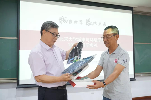 的感受和收获。她希望师弟师妹们能够珍惜时间,充实自我,既领略到学科的美和乐趣,也能够健康成长,拥有像天地一样广阔的格局和胸怀,承担起城环人的责任和使命,为国家民族的发展做出贡献。 老生代表李新月发言 紧接着,2019级本科新生代表孙知难发言。他通过讲述报到以来的几件小事,表达了自己为祖国的绿水青山不懈奋斗的志向和追求。在本科生军训文艺汇演结束后,他用休息时间,分拣回收LED棒,践行环保理念;军训结束返校后,他又与林歌的其他同学一起,用烈日下6个多小时的坚守,回收了3000余件军训服装。他带着强烈的使命感来到城环,希望可以从小事做起,与同学们一起携手共建美丽中国。 新生代表孙知难发言 典礼上还举行了2018年度“铁汉-城环奖”奖学金、集体奖颁奖仪式及2019年度“铁汉-城环奖”奖教金、奖学金捐赠仪式。学院李本纲副院长和李双成副院长分别为获奖代表于欣源、徐帅颁奖,深圳市铁汉生态环境股份有限公司北京区域总经理张丽华学姐上台进行“铁汉-城环奖”奖教金、奖学金第七年度的捐赠,党委副书记张新平代表学院接受捐赠,副院长刘鸿雁代表学院向张丽华学姐回赠纪念品。 2018年度“铁汉-城环奖”颁奖仪式 2019年度“铁汉-城环奖”捐赠仪式 刘鸿雁副院长向张丽华院友赠送学院纪念品 刘耕年书记向张国友院友赠送学院纪念品 最后,开学典礼在《燕园情》的优美旋律中圆满结束。我们来自江南塞北,情系着城镇乡野,我们走向海角天涯,指点着三山五岳。2019级新同学将从这里出发,遨游知识海洋,力行专业实践,城载世界,环抱未来! 文字 | 薛雨坤 图片 | 赵红阳 覃吴颖 主编 | 赖雨亲 审核 | 周伟 张晓华 编辑 | 陈昱龙