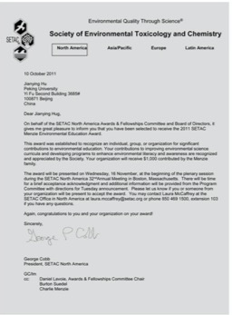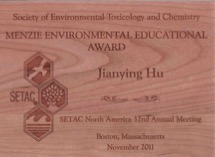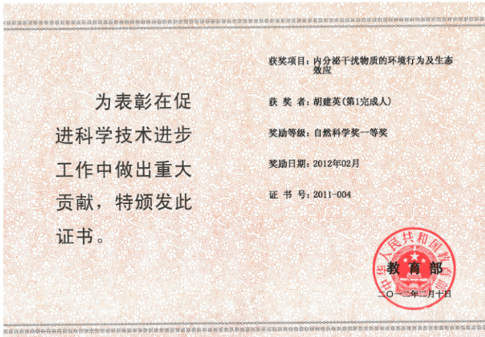 教授,教育部长江特聘教授。1999年获国家杰出青年科学基金项目资助,2009年度教育部长江特聘教授,兼任日本国立医疗科学研究院客座研究员。主要研究环境中微量有害化学物质的环境过程及其生态健康风险研究,主讲《环境风险评价》和《环境污染化学》课程。在PNAS,Nat. Commun.和ES&T等发表SCI 论文170 篇,SCI他引约6000次,获5项发明专利,一项实用专利和1项国家版权局软件著作权。主编“十一五”国家级规划教材“化学物质的风险评价”(北京市精品教材),主持基金委创新研究群体项目,基金委重点项目(3项)。国家自然基金委重大国际合作项目,科技部政府间国际科技创新合作项目等。获国家自然科学奖二等奖(排名第一),高等学校科学研究优秀成果自然科学一等奖(排名第一),美国环境毒理化学学会(SETAC)授予的“MENZIE Environmental Educational Award”和第七届中国女青年科学家奖。担任Chemosphere副主编,和其他5个国内外杂志的编委;国务院第五届国家级自然保护区评审委员会委员(2009-2013年),“生活饮用水卫生标准”修订工作咨询专家组成员(2018-)。 2011年,胡建英获美国毒理化学学会(SETAC)颁发的“MENZIE Environmental Educational Award”奖 (迄今中国唯一) 2011年获得教育部自然科学奖一等奖 2015年获得国家自然科学二等奖 2010年获得第七届“中国青年女科学家奖” 师门硕果 胡建英教授修身立德、学为人师、行为世范,廉洁自律,以高尚情操、丰富学识、仁爱之心和人格力量教育影响和感染了一批又一批的学生。她注重对学生思想、学习、生活的全面引领,把传授知识、培养能力同塑造学生正确的世界观、人生观、价值观结合起来,教育效果明显。20年累计指导硕士研究生36名,博士研究生28名,博士后5名,毕业学生就职于多伦多大学、美国劳伦斯伯克利国家实验室、北京大学、北京航空航天大学、上海交通大学、华东理工大学、北京林业大学、中国环境科学研究院、中国科学院生态环境研究中心、中国农业科学研究院、中国疾病预防控制中心等单位,受到用人单位的好评。指导研究生获北京市优秀博士论文奖,全国优博提名奖,优秀青年基金项目资助,教育部青年长江,全国奥加诺水质与水环境奖学金一等奖2名。所指导博士生和硕士生获得第三届北京大学陶氏化学可持续发展创新大赛提名奖。 2005年,指导学生万祎获首届全国奥加诺水质与水环境奖学金一等奖 2008年,指导学生万祎获北京市优秀博士论文奖; 2009年,指导学生常红获北京市优秀博士论文奖; 2009年,指导学生万祎获国家优秀博士论文提名奖; 2011年,指导学生彭辉、孟丽苹、范湛蓝、吴世闽获第三届北京大学陶氏化学可持续发展创新大赛提名奖 2013年,指导学生巫晓琴获北京大学优秀博士论文奖 2013年,指导学生彭辉获第七届全国奥加诺水质与水环境奖学金一等奖 2017年,指导学生巫晓琴获国家自然科学奖二等奖 指导吴世闽、董兆敏、张琨、巫晓琴团体获得第二届北京大学陶氏化学可持续发展创新大赛优秀奖 师门文化 勤奋好学,博闻慎思,团结友爱,严谨求实,敢为人先 教师语录 要么就不做,要做就做最好; 每一个学生都是可以培养的 教学相长 “学高为师,身正为范;学而不厌,诲人不倦。” 在指导学生的过程中,胡建英注意把学科研究和社会需要的前沿知识,深入浅出地融入实验室的研究活动中,开拓学生的思路,培养学生分析、研究、解决问题的能力,开设课程在学院的教学评估中成绩位列第一。 在本科生当中开设“微量有毒物风险分析”,由于国内没有很好的教材,胡老师将自己历年的课程教案和相关研究工作进行整理,编写了一本教材《化学物质的风险评价》 研究生课程开设 “环境污染化学”课程,是环境科学专业研究生的必修课,这门课以实际研究工作为主线,结合一些相关知识,信息量很大,而且每年都有新鲜的内容,经常刺激大家思考,深受研究生们的喜爱。