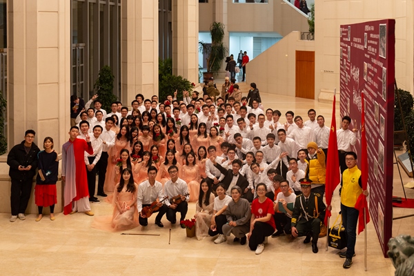 回顾今年的“一二·九”,有太多的故事值得回忆。从十月初接到校团委通知开始,全院师生就行动起来,学院党委大力支持,团委牵头负责,19级新生作为合唱主力。从编曲排练、器乐伴奏,到舞台表演、视频拍摄,无不凝结着城环师生的爱国情与创造力。 我们的歌声在逸夫贰楼、英杰交流中心、新太阳学生中心、对外汉语教育学院先后响起,而今天终于在百年纪念讲堂唱出对祖国的热爱。学院党委团委老师、班主任、辅导员和新生们一起参与训练、共同登台表演。 我们记得逸夫贰楼里初拿曲谱时的茫然,也记得新太阳学生中心初次合拍时的惊喜;我们怀念排练疲惫时老师们送来的的糖葫芦,更怀念印着城环院徽的生日蛋糕;我们看着彼此定妆的脸颊放声欢笑,更在踏上百讲舞台那一刻狂歌竞夜,留下了属于自己的感动。 在新中国成立70周年之际,城环师生以歌唱的方式诉说着爱国之情。“一二·九”师生歌会不仅是一次合唱比赛,更是一次爱国主义教育,是属于19级新生的重大活动。《国家》和《我爱你中国》的旋律成为了专属于城环19级的独家记忆。