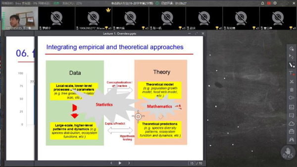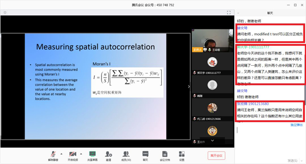 2月17日,北京大学2020年春季学期开学。全体城环人在学校与学院的部署下顺利实现延期返校,按时上学的教学目标。我们将通过这篇新闻记录这段特殊的历史时期。 一、课堂速览 开课之前,先来段自我介绍 城市规划与公共健康 授课教师马亮 助教王宏宇 上课开始!有这种微信群线上交流的基本款 经济地理学进展 授课教师贺灿飞 助教汤慧桢 还有大家一起看录像的升级版 生态学研究进展 授课教师刘鸿雁 助教赫文琦 还有认真化妆以后却忍痛关掉摄像头专心只看老师的 发展战略与区域开发 授课教师李双成 助教张雅娟 生态统计方法 授课教师王少鹏 助教罗明宇 或者与老师相看两不厌的 土地科学原理 授课教师蒙吉军 助教程浩然 以及老师觉得你懂了但你没懂只能疯狂给大佬刷“问题”打call的 生态学技术与方法 授课教师王志恒 助教李亦超 最后是学生发言环节(一定要保持微笑) 城市社会专题 授课教师柴彦威 助教李彦熙 二、教师采访 网络实时课程对学生来说也许只是换了一个看直播的平台,对老师来说却是从教以来一次巨大的挑战。课后我们及时采访了几位老师,来看看他们的感想吧! 生态学研究进展 刘鸿雁 : 全新形式的课堂、特殊时期的授课,对于我而言是一次很难得的经历,学校和学院给予了很多帮助,包括线上网络培训、微信群的反馈等。为了网课(植物学),我提前工作了一个多星期,事先实验了三个系统,担心黑屏又预录了语音课程,准确地预测了教学网拥堵,最后果断地采用了腾讯会议系统,总之是一次新奇而精彩的经历,仿佛迎接一场大考。我感到因为疫情和学生们的空间距离更远了;因为网课,我和这些“网络原住民”的心灵距离,却更近了。 疫情不能阻止学习的脚步和科研的热情,希望每一位同学利用好在家学习的契机,合理利用时间。同时建议大家网络上课期间打开摄像头,便于教师看到学生的表情,对学生的状态做出判断,实时调整教学进度。最后让我们共同期待疫情的胜利和返校的相聚! 土地科学原理 蒙吉军: 说实话,对于上网络课程,我之前是排斥的,因为总觉得自己不善于出镜,在镜头前会紧张,担心讲课会发挥不好。但接到学校延期的通知后,我就决定这学期开设的课程均采用在线方式教学,不影响教学进度和效果。 因为是第一次上网课,脑海里设想了很多上课的情景,甚至像表演似的设计好了一些重要环节合适的台词。另外,还对自己身后背景进行了专门的布局,摆放了一盆高大的绿植,并选择了光线最佳的视频拍摄角度和自己座位的最适高度,最后上课的时候还穿了正装。总的来说,我感觉第一次网课还是非常成功的,也感谢所有选课同学的配合和助教的辛勤付出。 最后希望同学们不要恐慌,遵守国家、社区防疫的要求,尽量少出门,出门一定戴口罩,做到不聚会、勤洗手。防疫的同时,也要不耽误学习和科研,希望同学们在家合理安排时间,争取使灾害造成的影响最小化。 全球变化生态学 朱彪 我使用腾讯会议上课,除了看不到学生之外,效果还不错,最后留些时间与学生互动,没有什么困难。网课对课堂效果肯定有影响,与学生的眼神交流比较困难,也没有学生的第一时间反馈和互动;在课程最后留出时间与学生语音互动,提问回答,有部分弥补作用。希望大家不要放松学业,在家注意锻炼和饮食,做好防护,有问题多与任课教师或自己导师沟通,把疫情的影响降到最低。 三、后勤保障 开学第一周顺利完成教学任务不仅源于老师的精心准备,也离不开学院的后勤保障。为此我们采访了学院教务老师于佳鑫,详细了解开学第一周背后的故事: 研究生教务这边的工作主要分成三个部分,招生、培养和学位 。从疫情爆发以来,根据学校和学院的工作安排,全体老师就开始在线上开展工作。关于课程方面,我的主要工作就是全力保证课程的顺利进行。具体来说,2月6日学校给全体教务人员开会布置工作,我在2月7日将学校的精神传达给学院的老师们,本学期预计开设46门研究生课程,我都逐一去跟老师沟通,了解他们想用什么样的方式去授课。一开始,部分老师因为担心授课效果受影响,对网络授课的形式还不是很接受。根据学校和学院的安排,本学期网络授课期间,每门课程均配备1名助教,协助老师们准备课程。在研究生院、教发中心、学院老师们和助教们的共同努力下,最终各位老师根据课程特点选择了最合适的授课方式。 所有课程的授课方式确定后,2月14日我给全体研究生同学发邮件通知。因为大家都是第一次遇到特殊情况,难免会有各种疑问,那几天我就一直守在电脑前面回复邮件。开课后我这边也是随时在关注课程效果,收集每天课程的教学情况反馈。 这个过程中有很多比较有趣或感人的事,其中有一件我印象特别深,就是网络并没有影响大家上课的积极性,反而好像更积极了。有两门课程的老师跟我提出希望再增加选课人数上限,因为课程容量是根据去年数据定的,今年选课人数多了不少,有部分学生没选上课然后问能不能增加。我觉得宅在家,让同学们学习的积极性就更高了。也希望没课的同学们好好准备综合考试、开题和毕业论文,减少疫情对大家学业的影响。 我们还采访了部分助教,来看看他们的付出吧: 土地科学原理助教 程浩然: 第一次担任助教,就遇上了“云教学”这种特殊的形式,新奇之余更多的是紧张。在接受了全面的在线