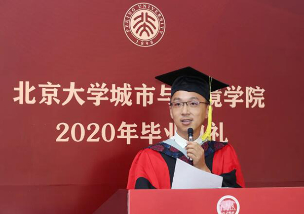 的毕业典礼,当时是硕士毕业。我就结合毕业后这些年的自身经历,给大家提两点建议。 第一个,希望大家能找到一个长期稳定的个人爱好,最好是和体育有关,坚持下去,可以强身健体,可以发泄压力。我个人很喜欢踢球,在美国读书时的无聊时光,大都是在球场上度过的。刚回国工作时,压力较大,锻炼不多,工作效率也不高。最近几年,我又开始有规律地踢球,整个身体状态好很多,工作的效率提高很多,很好地缓解了工作和生活的压力。我也非常喜欢城环教工运动队组织的体育活动,以及每年的北大运动会。“完全人格,首在体育”,希望大家都能找到一个业余爱好,可以是跑步、球类、游泳、爬山等。有了好身体,才有好心情,才有高质量的生活和高效率的工作。 第二个,希望大家尽快找到一个值得自己去长期付出的事业。如果你已经找到,恭喜你,希望你坚持下去。如果你还没有找到,希望不要等太久。兴趣是最好的老师,如果自己的职业就是自己的兴趣,那岂不是很开心的事情?如果你不确定,那就遵从自己的内心(follow your heart)。虽然我比你们大不了多少,博士毕业也才10年,但还是能体会到人生是一场长跑,暂时的领先和落后都不算什么。只要你选准方向,长期坚持,一定会做出成果,达到目标。一辈子能做好一件事,就是很成功的人生。 我们处在一个“百年未有之大变局”的时代。同为北大人,我还想叮嘱你们一句,希望你们追求卓越,精益求精,担当起自己的责任,无愧于北大人的身份。毕业后不管是走上工作岗位,还是继续在校园求学,我希望你们都能stay hungry, stay foolish (求知若饥,虚心若愚),努力去追求和享受幸福美好的生活。 祝你们前程似锦,不负韶华!