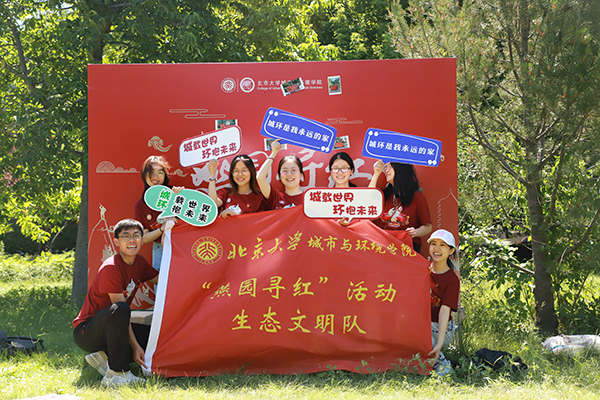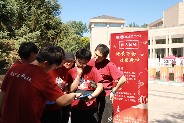 70余名党团支部书记、团学研骨干、本研学生共同参与了本次活动。 启动仪式后全体合影 燕园历史深蕴红色基因,城环精神扎根祖国大地。本次活动积极探索将燕园历史和城环精神的宝贵潜能转化为学生思政教育、党史学习教育的优势动能,深入落实“五育并举”教育方针,创新开展本研思政融通教育,进一步推进思政教育和党史学习在青年学生中走深走实,入心入脑。 燕园寻红任务卡 专业筑底,凝城环红色之基 6月5日上午,“城迎百年,学史力行”——红色地理微课堂发布会暨燕园寻红党史教育专题定向越野活动启动仪式在北京大学静园草坪举行。 在启动仪式上,刘耕年指出,今年是中国共产党成立一百周年,也是全面建设社会主义现代化国家启程之年,北大学子、城环青年将比以往肩负更为重大的历史使命。本次活动不仅将帮助大家认真学习北大人的奋斗精神、燕园承载的红色记忆以及党所经历的苦难辉煌,更将成为学院引领城环青年立志传承北大和城环精神、不断发扬红色传统、持续开展党史学习教育的精彩一课。 刘耕年致辞 “大地,我的生命,从此广阔如你”,学院合唱团为大家演唱城环原创歌曲《大地》。该曲讲述了一代代城环人心怀家国、不断求索,服务党和人民的事业需要,接续传承专业精神的故事。当音乐声响起,MV中不断重现学院师生野外实习、高原科考、城乡建设等活动的历史场景,初心矢志不渝,使命代代接力,现场师生深深为之感染鼓舞。 《大地》演唱 全体师生认真观看《大地》 “红色地理微课堂”系列视频进行了首场发布。该系列视频以学院为迎接建党百年编写的《百年伟业·红色经纬》地理学教材为基础特别打造,邀请学院知名教师详细解读教材中党史大事涉及的地理学知识。全体师生一同观看了刘耕年主讲的系列视频第一课——《首战平型关、威名天下扬》,视频从专业视角讲解平型关的地形地貌,剖析我军取胜之匙,阐明平型关大捷的关键作用,深入浅出地讲解增添了思政教育的地理味,增强了学史活动的专业性。视频发布后,在刘耕年的带领下,大家一起重温入党誓词,再悟入党初心。 重温入党誓词 在“燕园寻红”授旗环节中,刘耕年、王逸鸣、张新平、何瑾、王春和万岱向参加活动的队伍授旗,6支队伍结合专业背景分别被命名为“美丽中国”“生态文明”“绿水青山”“绿色低碳”“智慧城市”“乡村振兴”,将“城载世界,怀抱未来”的专业情怀融入到活动当中。 授旗仪式 在部队退役归来的2016级本科生李龙盛示范下,参加活动的嘉宾老师带领同学们进行热身活动,“燕园寻红”定向越野活动正式拉开帷幕。 运动热身 燕园寻红,探北大精神之源 燕园寻红,寻的是代代赓续的百年血脉,矢志不渝的红色初心。依托燕园历史,用好红色资源,传承好红色基因,是我们学习党史、爱党爱校的重要一环。本次活动共有8个打卡点,引导同学们在燕园中追寻红色光影,感悟百年征途。 燕园处处红,红色记忆深藏此间。在活动中,队员们依次经过静园“三一八”遇难烈士纪念碑、李大钊蔡元培塑像、西南联大纪念碑、华表、日晷、百周年纪念讲堂广场等场所,一路追寻燕园红色遗产和精神地标,体悟其中承载的光荣历史,在问答与游戏中深入思考北大命运是如何与党的事业血脉相连。 队员们在断桥残雪牌坊下团结协作,在振兴中华碑前放声歌唱,在百周年讲堂广场上巧解难题。建党百年史中,北京大学始终与祖国和人民共命运、与时代和社会同前进,通过活动,同学们以小见大,深悟红色传承和专业情怀,更加立志围绕党和人民事业需要,坚定信念扎根祖国大地,守护绿水青山,建设美丽中国,用实际行动展现新时代城环学子的使命与担当。 同学们在各打卡点完成任务 以史铸魂,立青年信仰之本 本次活动为了让党史味道更浓、学习效果更好,将中国共产党百年奋斗历程以“开天辟地”“改天换地”“翻天覆地”“惊天动地”四个阶段依次展现,以习近平总书记对各阶段党史大事的评述指示为主要学习素材,以各阶段内最有代表性的燕园场所为活动节点,设置了相应党史学习专题活动。 从静园草坪出发,“开天辟地”阶段主题游戏为“诵读青春,传承信仰”和“重温长征,感悟初心”。李大钊文章《青春》朗诵视频录制、“长征过草地”游戏使同学们学习体会了建党初期革命先烈不怕流血、不怕牺牲的精神。“指点江山、激扬文字”是“改天换地”阶段主题游戏。在“断桥残雪”石牌坊前,城环学子风华正茂、挥斥方遒,大家开动脑筋,誓将红色经典一一重映。 “翻天覆地”阶段活动点设置在“振兴中华”碑前,“红色旋律,青春之歌”游戏帮助大家再忆1981年排球世界杯预选赛,中国男排在0:2落后的情况下奋起直追的往事。同学们在“团结起来,振兴中华”口号的激励下,通过红歌接唱游戏唱响了时代歌曲,重温了红色旋律,回顾了四十年改革开放的峥嵘历程,感受了北大历史中蕴含的磅礴精神力量。 最后一个环节“惊天动地”阶段主题游戏为“地载万物,理蕴乾坤”,展望全面建设社会主义现代化强国,游戏采用知识问答形式,以中国特色社会主义新时代的重大方针政策中所涉及的地理知识为考点,考察了同学们的掌握领会情况。新时代,新征程,城环青年应该具备更加扎实的专业知识,练过硬本领,担时代重任。 小组合影 本次燕园寻红