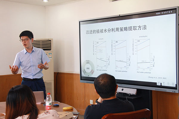 青年教师张尧研究员做主题分享:卫星遥感在植被监测中的应用,30余位青年教师和博士后参会,会议由香港六合彩开奖直播