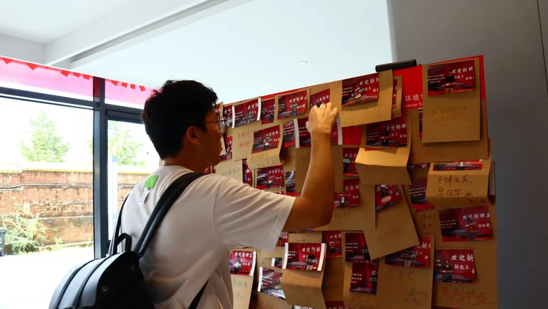 清晨,21级城环研究生迎新报到工作的序幕在淅沥的小雨中悄然拉开。寸阴若岁,崭新的城环新大楼在此刻正静静等待着一张张同样新鲜的面孔的到来。 准备工作 在报到前一天,研究生会各位骨干早已将各类迎新物资准备妥当,并提前进行了接待现场布置与接待流程演练,在保证迎新工作能够顺利、有序、高效完成的同时,力求用最新颖、最有趣的活动带动新生们积极快速地融入到城环大家庭之中。 迎新现场 报到环节 9月6日早上8:30,报到工作正式开始。学院党委副书记张新平老师,团委书记、学工办主任谭卓立老师,团委常务副书记宋宛儒,研究生教务办公室于佳鑫老师以及学工办副主任蔡洪波老师也早早地亲临现场,与大家共同工作,欢迎新生们的到来。新生们在工作人员的指引下有序验证身份、核对报到信息、办理报到手续并领取相关材料,顺利地完成了报到流程。 精彩活动 在本次迎新工作的报到环节,除抽取心愿卡的互动游戏外,学院研究生会骨干们还结合当下时髦的“盲盒”概念与备受大家喜爱的“城小环”形象,别出心裁地设计出了以选取卡套为形式的“盲盒特色任务”,为大家研途生活的开启率先提供了一份小小惊喜。 城环有你,未来可期。新生们手持“我爱城环”、“城环是我永远的家”等具有城环特色的各式标语在迎新背景板前留下了城环研途生活的第一张珍贵影像,并用五颜六色的画笔在一旁书写下对于未来生活的美好期待与向往。 暖心关怀 在迎新过程中,北京大学校长郝平,常务副校长龚旗煌,党委副书记、副校长陈宝剑等学校领导也亲自来到城环新大楼迎新工作现场,并在学院党委书记刘耕年、院长贺灿飞的陪同下询问新生报到细节、体验特色“盲盒”活动,感受城环迎新工作热烈温馨的氛围。学校与学院领导的关心使得新同学们倍觉温暖与感动,也让大家对今后的研途生活憧憬着一份美好的期待。 新起点,新征程 愿2021级的研究生同学们 能够带着这份与城环初相见的美好 在未来的研途生活中披荆斩棘 以青春之我 展现城环新青年的新担当