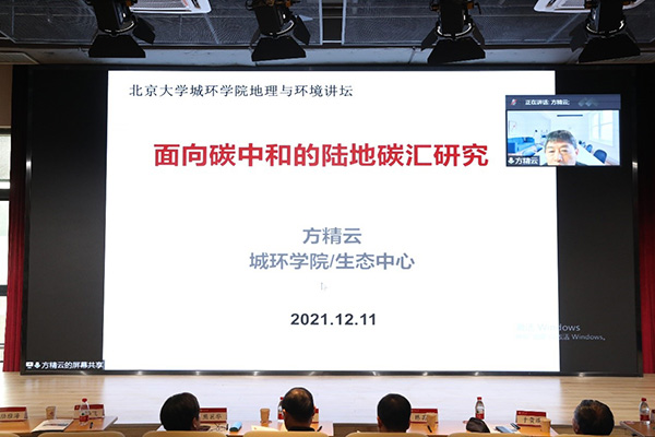 的双碳计划相关研究进展进行了调研。 开幕式后的专家前沿报告环节由学院学术委员会主任陆雅海教授主持,四位来自地理学不同领域的院士和专家围绕双碳计划分别做了精彩的主旨演讲,报告面向学科前沿,展示了高层次的研究成果。 香港大学城市规划及设计系叶嘉安院士以“中国城市发展的第五波”为主题作了报告,系统梳理了1949年以来中国城市发展五个阶段的社会经济发展背景和城市化特征。他指出,受到国内庞大消费市场和“双循环”的驱动作用,当前中国正处于以超大城市人口与功能外溢,以及特大城市群发展为主要特征的城市发展第五波。叶院士还带领大家展望了未来中国城市发展的第六波,提出随着“智慧城市”和“交通4.0”的发展,未来可能会出现分散化、网络化的新城镇体系。 北京大学博雅特聘教授、云南大学校长方精云院士作了主题为“面向碳中和的陆地碳汇研究”的报告。他主要介绍了碳中和的内涵、我国陆地碳汇估算、未来碳汇预测以及未来主要任务四个方面的内容。指出减排、增汇是实现碳中和目标的两个主要方面,增汇的核心是生态建设、管理和保护。探究结果显示,我国的陆地生态系统是显著的碳汇,但存在着不确定性,未来我国陆地具有巨大的碳汇潜力,要加强对碳汇及未来潜力的精准预测,加强对碳汇技术和实现途径的研究。 中国科学院地理科学与资源研究所于贵瑞院士以“大尺度宏观生态系统科学的基础理论及观测研究方法”为主题作了报告,他从生态学与生态系统科学、宏观生态系统科学基本理论与宏观生态系统观测研究方法三个角度,高屋建瓴地指出了生态学的主要内涵和研究重点。他着眼于宏观生态系统科学研究的核心领域和重大科学问题,提出保护和构建高质量稳定的自然-社会-经济复合生态系统是生态文明建设的实质。并指出了生态系统碳氮水耦合循环及其资源环境效应是当前全球变化与生态系统科学的前沿问题。 中国社会科学院学部委员潘家华研究员则作了“美丽城市建设的碳中和导向”主题报告,从美丽城市建设与碳中和两个角度提出了应对气候变化的新思路。他认为区域空间规划,需要改变理念的认知革命,实现城市空间设计从功能分区到功能融合。还需要从垄断聚集到实现社会的扁平均衡,并大幅压缩能源总量的刚性需求,进行能源生产和消费的颠覆性技术革命,在碳中和的标准和导向下,事半功倍地推进碳中和目标的实现。 11日下午,副院长李本纲教授与城市与经济地理系主任曹广忠教授分别主持讲坛,学院的八位杰出青年教师分别作了主题分享。 王学军教授围绕“全球汞循环——从排放到健康风险”的主题,介绍了全球甲基汞暴露的主要途径,并结合具体案例研究案例指出了汞的暴露风险及对人类健康的危害;王开存教授关注了“中国陆表气候观测数据的渐变型不均一性”,介绍了城市化对地表太阳辐射观测、地表增温速率以及地表风速监测的影响以及观测数据的校正方法;周丰副教授从“农田氮水循环关键过程及调控”的角度出发,介绍了中国用水增速变缓的自然与人为驱动机制、全球农田土壤氮排放地域分异的界面化学原理以及农田氮水过程调控的潜力和热点;彭书时研究员聚焦“甲烷收支与气候变化”,指出煤矿开采、畜牧业和水稻种植是我国的三大主要甲烷排放源,目前利用大气反演得到的估算结果可能会高估中国的甲烷排放量;沈国锋研究员关注了“疫情之初的封锁对区域空气质量及PM2.5暴露的影响研究”,传达出COVID-19加剧了环境不平等的观点;林坚教授以“国土空间治理的逻辑”为主题做了报告,;提出要从区域和要素两方面认识国土空间,并介绍了推进国土空间治理的若干要点;朱晟君研究员从“企业如何扩展出口市场”的问题出发,介绍了一个基于引力模型和扩展引力模型的后验指标,指出了出口企业的“门户市场”,并对未来的出口市场多样化进行了预测;吴龙峰研究员则带来了“城市绿地悖论探索:以北京为例”的主题报告,介绍了城市绿地的增加引起的连锁反应,认为绿色空间引起的士绅化效应在北京周边地区更为强烈。 12日是第三届北大城环国际青年论坛,三位“林超青年学者”和15位国际青年学者分别作了主题报告。副院长王志恒研究员、自然地理与自然资源系主任彭书时研究员、环境学系主任卢晓霞副教授和生态学系主任唐志尧教授分别担任不同环节主持人。 自然方向的报告有:全球变暖背景下干旱区变化的多圈层特征;基于简化地球系统模型OSCAR的气候归因;黄土高原社会—生态系统变化及驱动机制;流域水环境和水温—生物地球化学模型;气候变化背景下土壤微生物群落的响应特征及碳转化机制;Green space in high-density cities of developing countries: data collection, effects on human health, and environmental justice;Rapid Holocene bedrock canyon incision of Beida River, North Qilian Shan, China;Healthcare Cities and Healthy Cities: the Implications to Alternative Urban Futures;Managing Disruptive Technologies: Exploring the Patterns of Local Drone Policy Adoption in California. 人文方向的报告有: 小世界AI模型-海量手机移动数据驱动的孪生城市基础研究;21世纪中国人口迁移的地理格局:基于异质性视角;Assessment of urban layer ventilation considering local building details;网约车对出行频率与出行方式的影响—以成都市为例;时间利用、