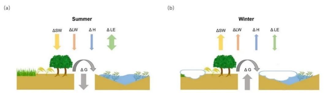 我院2016级自然地理与资源环境专业学生吴语萱同学拔尖计划研究成果“Wetlands Cool Land Surface Temperature in Tropical Regions but Warm in Boreal Regions”以第一作者在《Remote sensing》发表文章。 湿地在全球水文和生物地球化学循环中发挥着重要作用。区域气候调节是天然湿地最重要的生态系统服务功能之一。然而,在全球尺度上,湿地对局地温度的影响和归因仍不清楚。本研究利用卫星产品(地表温度LST、反照率albedo和蒸散发ET)来评估湿地与邻近土地覆被类型的地表温度差异及其可能的驱动因素。 图1 全球湿地分布格局 研究发现,多年平均上,湿地对热带地区有降温作用,但对北方地区有增温作用。北方地区55%以上的地区 ΔLST为正;在热带地区超过70%的区域 ΔLST为负值。同时,湿地对地表温度的影响在北方地区表现出明显的季节性:即湿地在冬季有增暖效应,而在夏季有降温效应。 图2 湿地与气温,森林,灌丛,草地和耕地温度差的空间格局 研究提供了湿地与其他土地覆被类型之间夏季和冬季地表热量收支差异。湿地与其他土地覆被类型albedo和ET的差异只能解释地表温度差异时间变化的30%。由于湿地的蓄水量较大,地面热通量(G)可以解释湿地的其他影响,在湿地夏季吸收能量,在冬季释放能量,这在以往的研究中经常被忽视。 如今,人们对湿地恢复以缓解气候变化越来越感兴趣。湿地恢复可显著降低氮污染、甲烷和CO2排放,并改变局部生物物理过程。本研究强调了未来大面积湿地恢复的潜在气候效益。由于不同地区的湿地具有不同的气候效应(升温或降温),因此应认真考虑不同地区湿地恢复的气候效益。 图3 夏季(a)和冬季(b)湿地与其他土地覆盖类型的地表能量收支 香港六合彩开奖直播