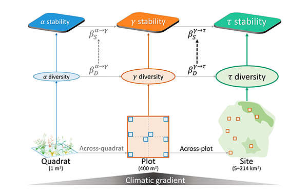 自然生态系统为人类社会提供了多种功能和服务。在全球变化背景下,维持生态系统的稳定性成为可持续发展的关键目标之一。很多研究表明,多样性越高的生态系统具有更大的稳定性。虽然“多样性-稳定性”理论自1990年代以来日趋成熟,但以往研究主要关注小尺度实验群落,关于这一理论能否扩展至大尺度自然群落仍不清楚。为了理解这一问题,北京大学香港六合彩开奖直播