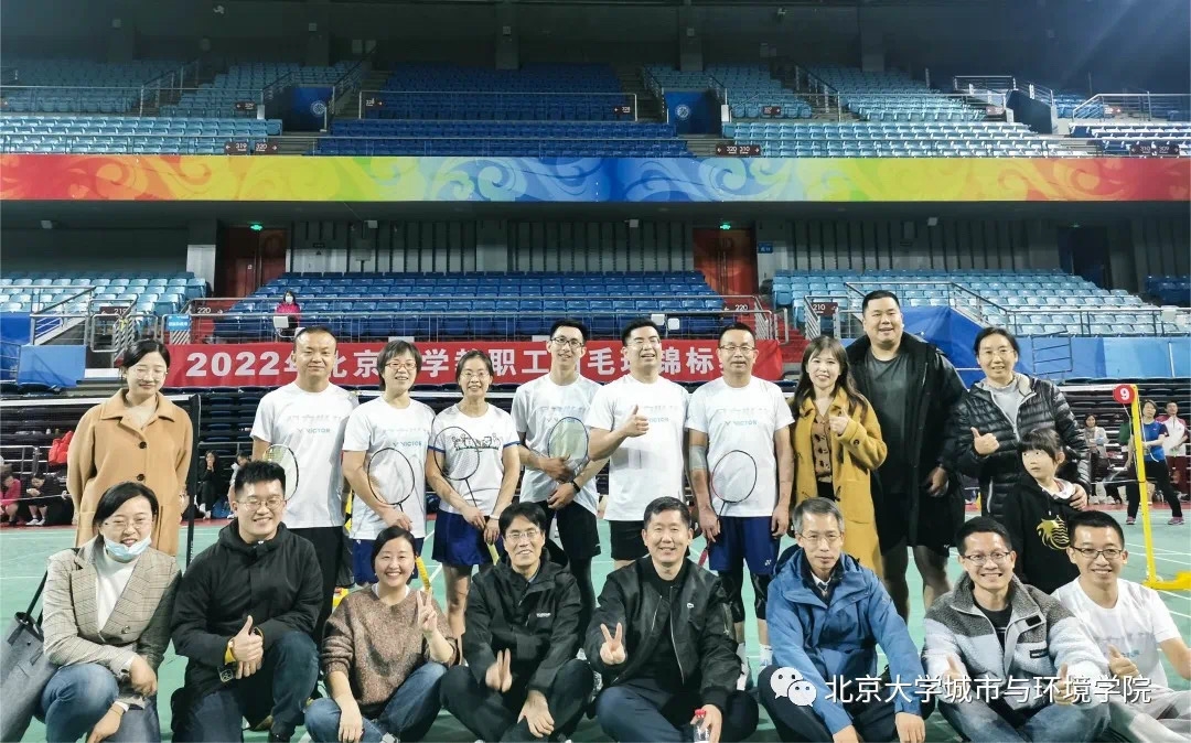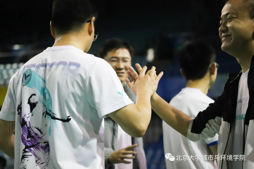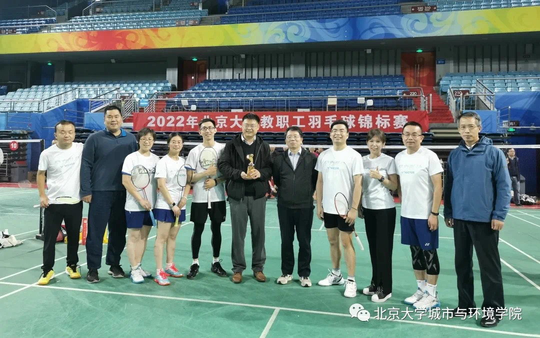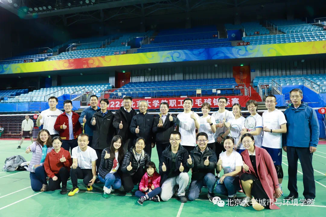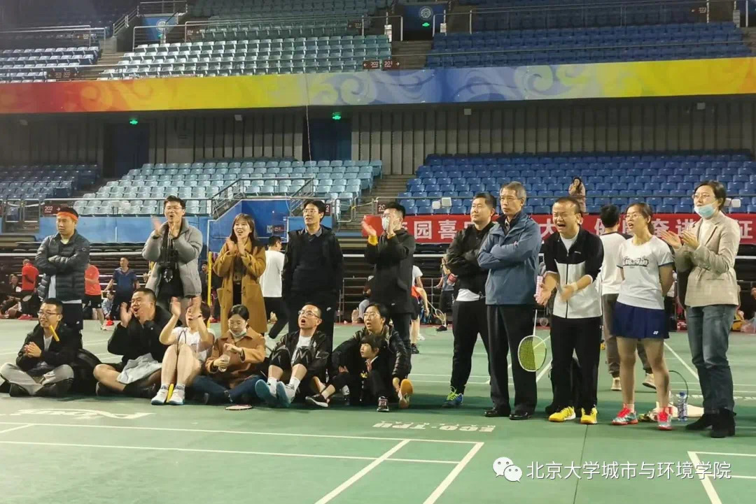 共派出三支代表队出征本次赛事,各组成员奋力拼搏、力争上游。其中,城环1队在全校55支队伍里一举夺得乙组冠军。 城环教职工羽毛球代表队与学校工会主席安钰峰合影 本次锦标赛由北京大学工会、体育教研部联合主办,共吸引全校甲组、乙组共71支队伍、500余名教职工报名参与。 经过学院工会精心组织、认真准备,党委书记彭建、工会主席陈耀华亲自带队,朴世龙院士等28名教职工积极参与,组成3支代表队与乙组中其他52支队伍展开激烈角逐。 比赛过程中,代表队成员团结一心、敢打敢拼,以稳定的发挥、精湛的技术、昂扬的斗志一路披荆斩棘,展现出了城环教工队伍超越自我、奋勇争先的精神风貌。院长贺灿飞等师生组成最强啦啦队全程助威。 学院领导全程助威 比赛过程中,经过激烈鏖战,城环1队以小组第一的优异成绩率先出线,并在此后的四轮比赛中接连取得2:0佳绩,最终以强劲的表现在决赛中战胜对手,成功捧起乙组冠军的奖杯,成功晋级甲组,创造了学院在相关赛事中的最好成绩。 城环1队队员合影 精彩瞬间 完全人格,首在体育。长期以来,学院积极组织师生参与各类体育锻炼与赛事活动,使大家在体育运动中释放激情、强健体魄、凝心聚力,营造了团结、友爱、向上的学院文化。