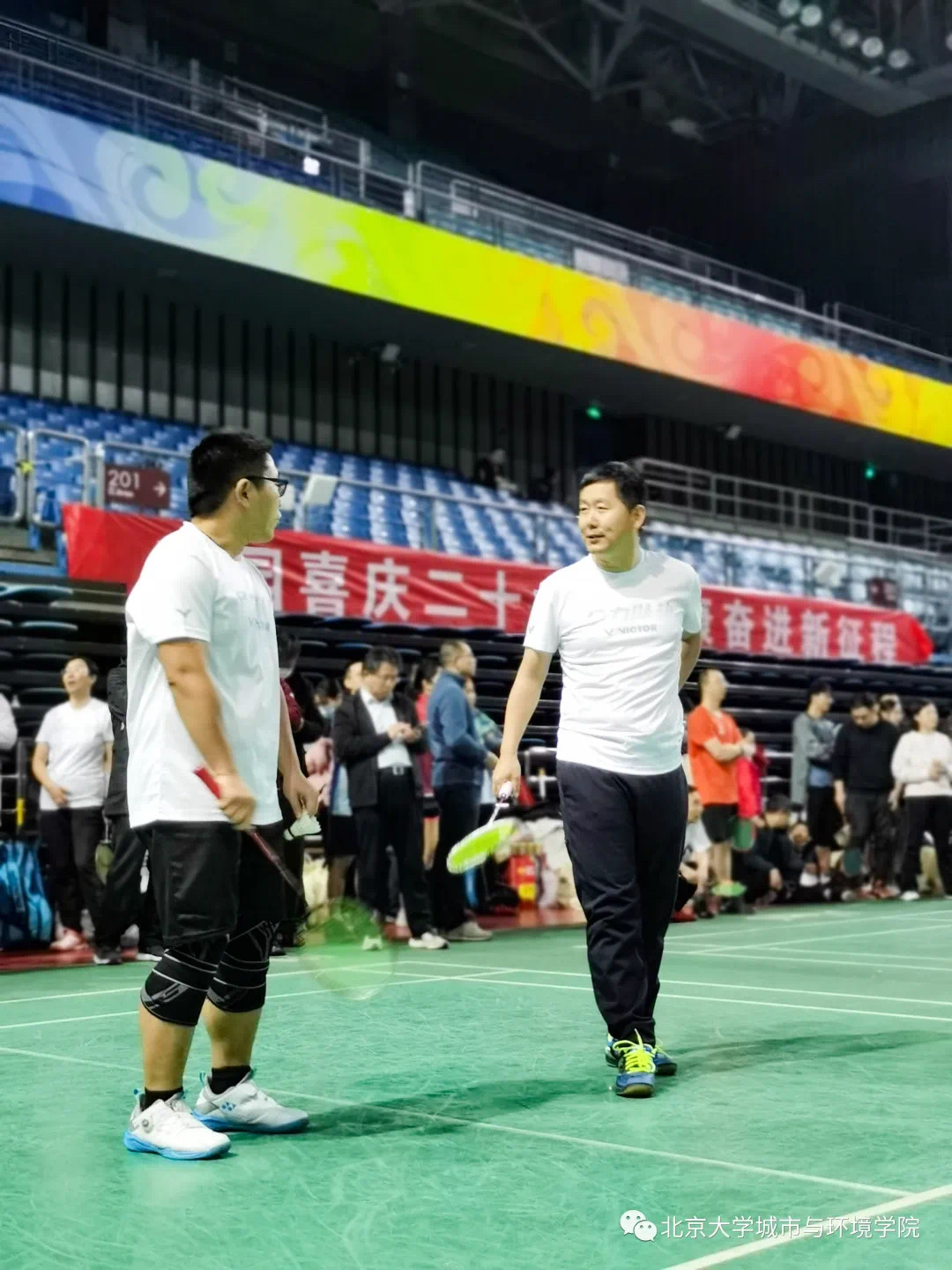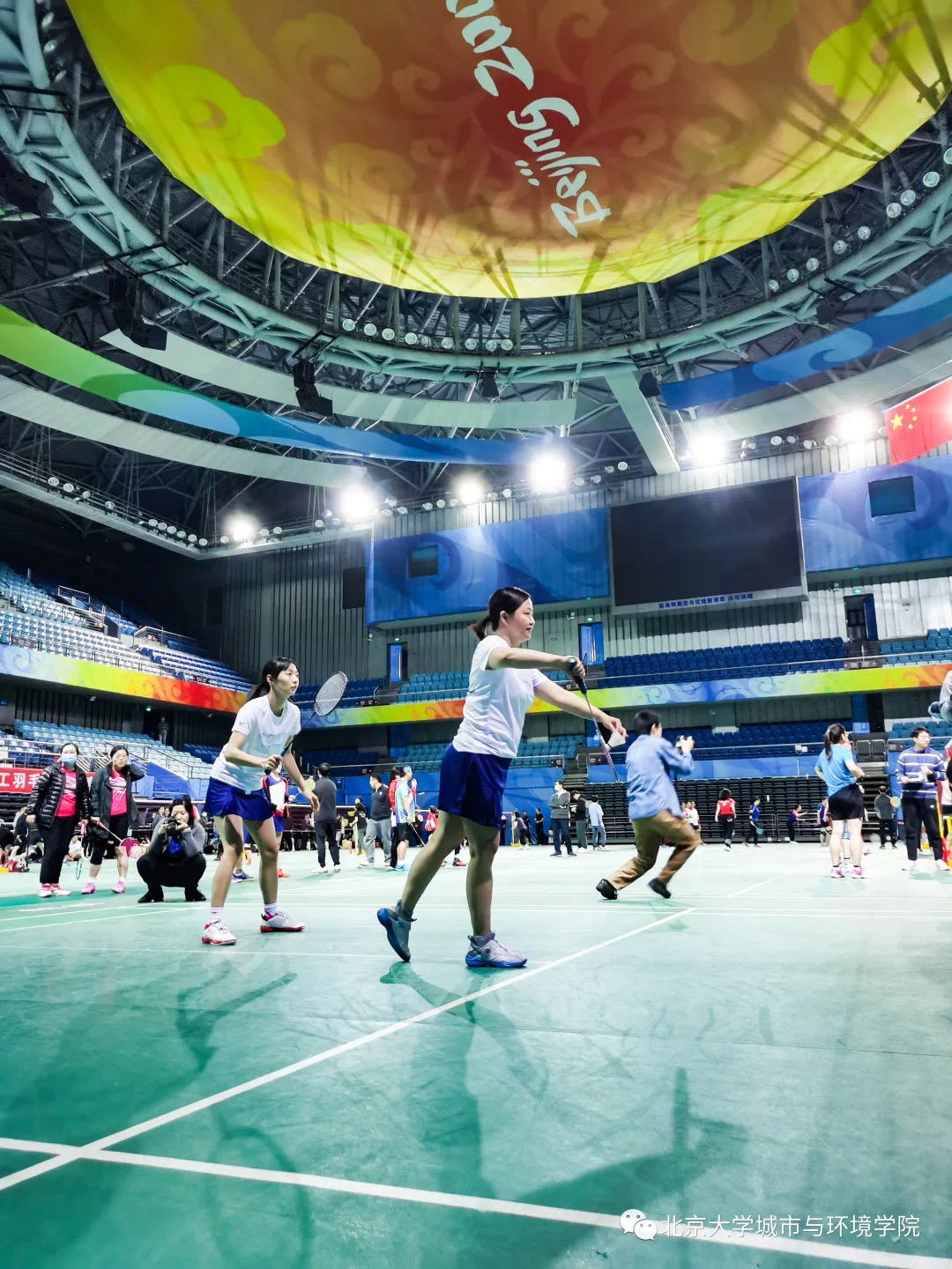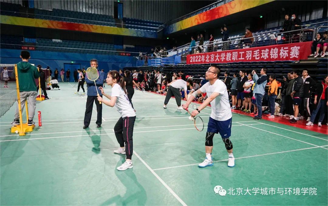 共派出三支代表队出征本次赛事,各组成员奋力拼搏、力争上游。其中,城环1队在全校55支队伍里一举夺得乙组冠军。 城环教职工羽毛球代表队与学校工会主席安钰峰合影 本次锦标赛由北京大学工会、体育教研部联合主办,共吸引全校甲组、乙组共71支队伍、500余名教职工报名参与。 经过学院工会精心组织、认真准备,党委书记彭建、工会主席陈耀华亲自带队,朴世龙院士等28名教职工积极参与,组成3支代表队与乙组中其他52支队伍展开激烈角逐。 比赛过程中,代表队成员团结一心、敢打敢拼,以稳定的发挥、精湛的技术、昂扬的斗志一路披荆斩棘,展现出了城环教工队伍超越自我、奋勇争先的精神风貌。院长贺灿飞等师生组成最强啦啦队全程助威。 学院领导全程助威 比赛过程中,经过激烈鏖战,城环1队以小组第一的优异成绩率先出线,并在此后的四轮比赛中接连取得2:0佳绩,最终以强劲的表现在决赛中战胜对手,成功捧起乙组冠军的奖杯,成功晋级甲组,创造了学院在相关赛事中的最好成绩。 城环1队队员合影 精彩瞬间 完全人格,首在体育。长期以来,学院积极组织师生参与各类体育锻炼与赛事活动,使大家在体育运动中释放激情、强健体魄、凝心聚力,营造了团结、友爱、向上的学院文化。