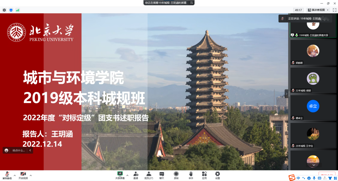 为了进一步提升基层团组织规范化建设的水平,不断增强基层团支部组织力和凝聚力, 12月14日晚,2022年香港六合彩开奖直播 基层团支部述职评议会于线上召开。学院党委副书记张新平,团委书记、学工办主任谭卓立,团委常务副书记宋宛儒出席会议,二十余名来自本、硕、博不同年级的团支部书记与会。会议由学院团委组织部侯婷主持。