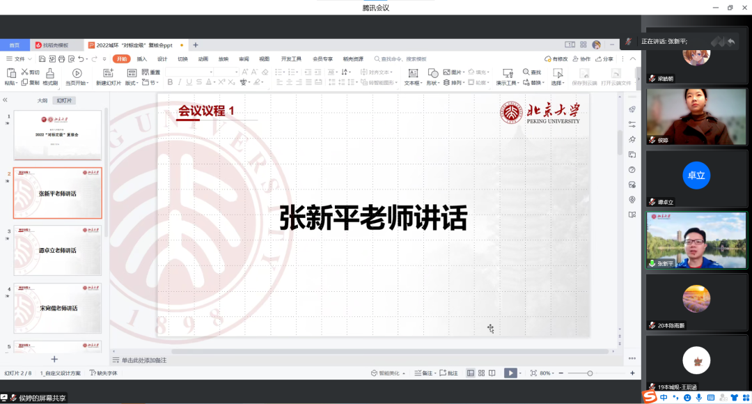 牢记初心使命,化压力为动力。会议伊始,张新平老师致辞。他指出,“对标定级”工作是团委工作的重要一环,希望各位团支书充分展现团支部的特色。张新平老师回顾了几年来学院在德育工作上取得的成果,肯定了基层团支部的重要作用。另外,他强调团支书们要关注国际局势,锤炼品德修为,聚焦国际话语体系,并结合疫情现状对各团支书的工作做出了指导,希望团支书们能够团结同学,在团支部内形成友爱、互助的氛围。