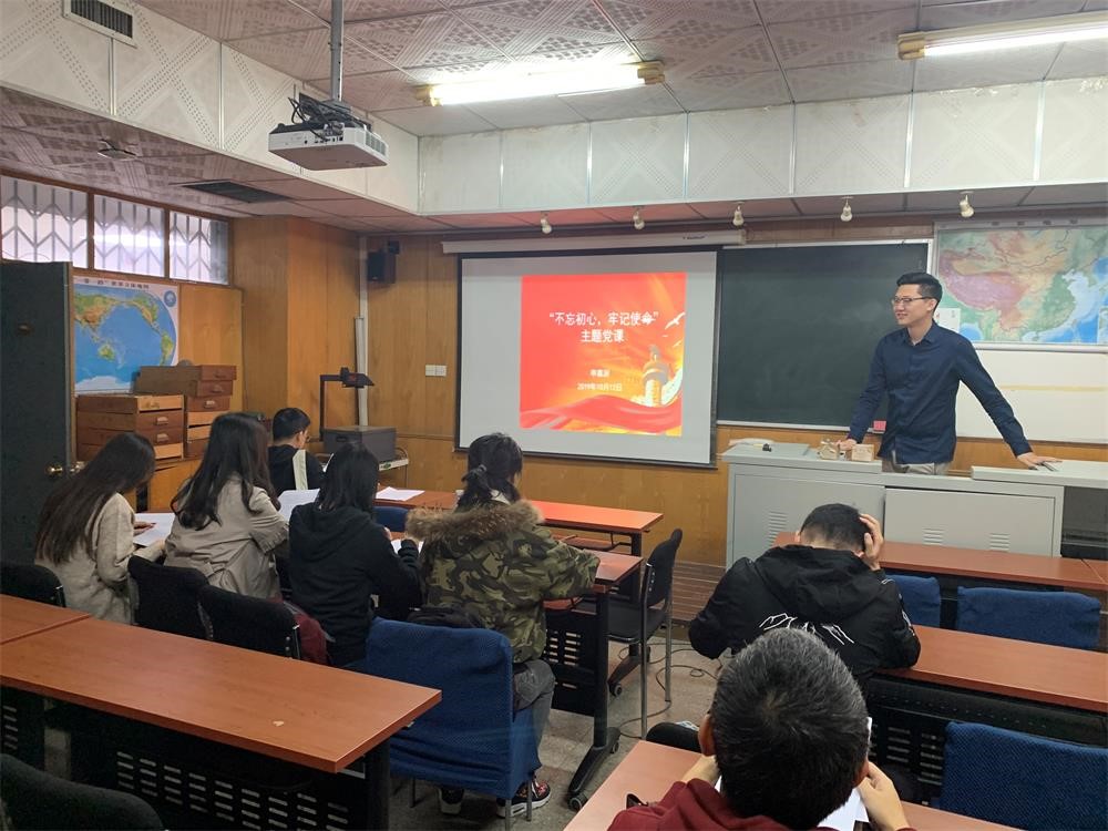 活动当日,首先进行了“不忘初心、牢记使命”党支书专题党课活动,党支部书记申嘉澍带领支部各位党员共同学习了习近平总书记在不同会议与活动中关于“不忘初心、牢记使命”的重要论述。习总书记在十九大报告中指出,不忘初心,方得始终。中国共产党人的初心和使命,就是为中国人民谋幸福,为中华民族谋复兴。作为我院自然地理学、人文地理学、环境科学与生态学的学生,要坚定“绿水青山就是金山银山”的理念,不忘初心,脚踏实地,专心科研,努力掌握能为建设美丽中国作贡献的本领。