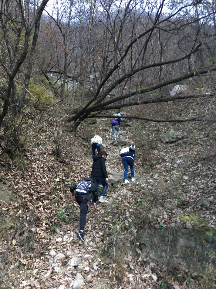 登山期间同学们时常驻足,结合自身所学知识以及相关软件辨识植物,遇到疑难时则会向院里相关专业老师寻求帮助,例如中国植物学会理事刘鸿雁老师帮助同学们辩认出白羊草和短梗南蛇藤。