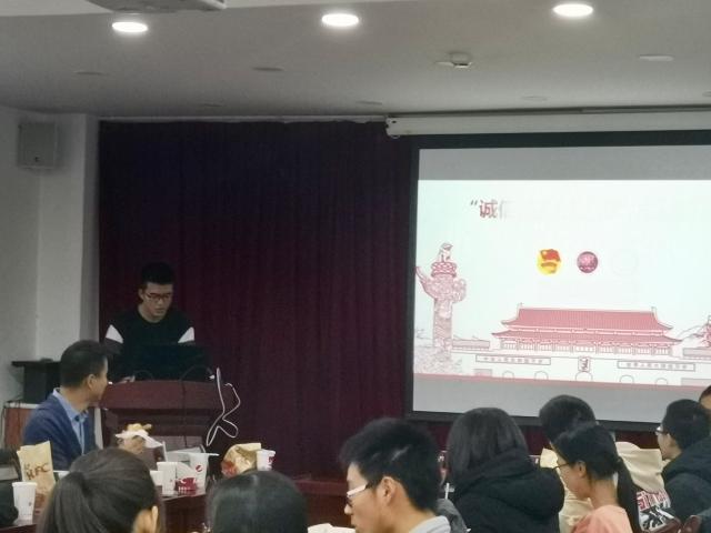 团支书贺伟桓首先进行“诚信教育”主题分享。他与大家分享了参加学生工作部“诚信教育燕园行”主题讲座的收获,就诚信的定义、诚信的社会意义以及社会信用体系建设的方式与未来等于同学们进行交流。并通过播放生活案例短视频、罗列日常生活中的诚信与失信行为等,将理论讲解延伸到实践生活,强调诚信教育和诚信意识最终要应用于生活实践。