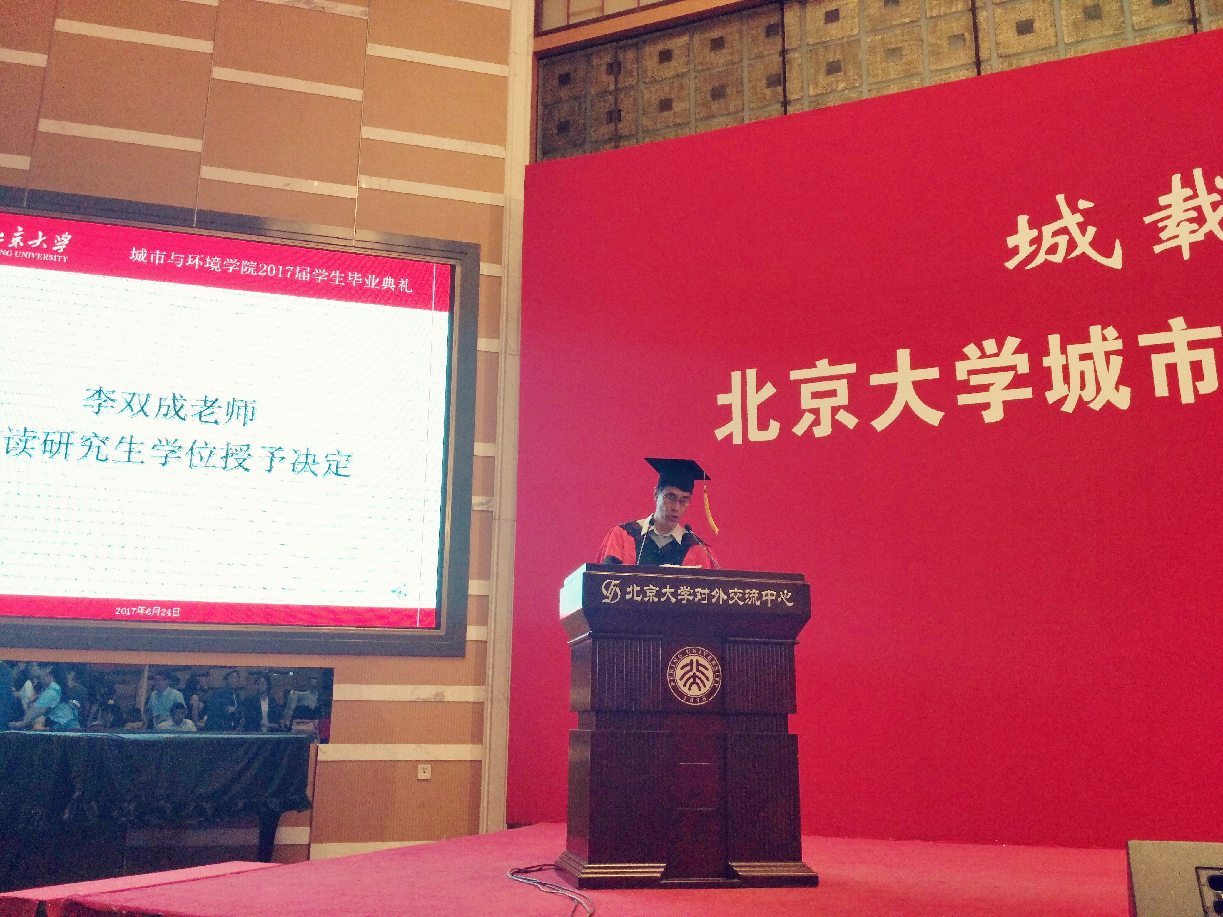 紧接着,2013级人文地理与城乡规划专业本科毕业生代表武欣玫发言,她分享了“致城环的一封信”: 感谢亲爱的城环,带给我们最好的老师、最好的伙伴;赐予我们兼容并包的胸怀、以天下为己任的担当;感谢你在四年前拥抱了我们,在四年间陪伴我们成长;如今,你更像一种烙印,将四年来成长的点滴,印在每一张自信的脸庞。