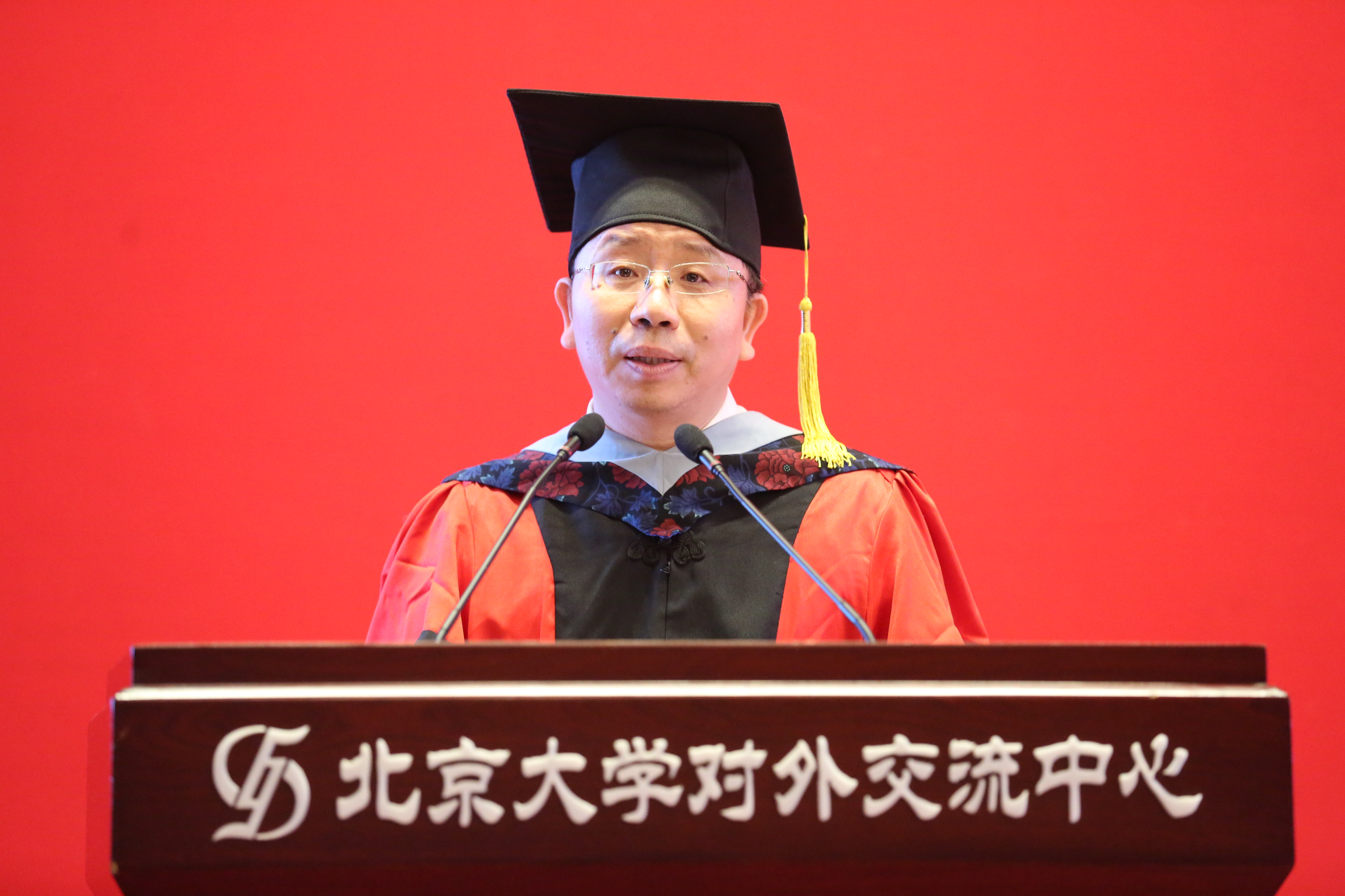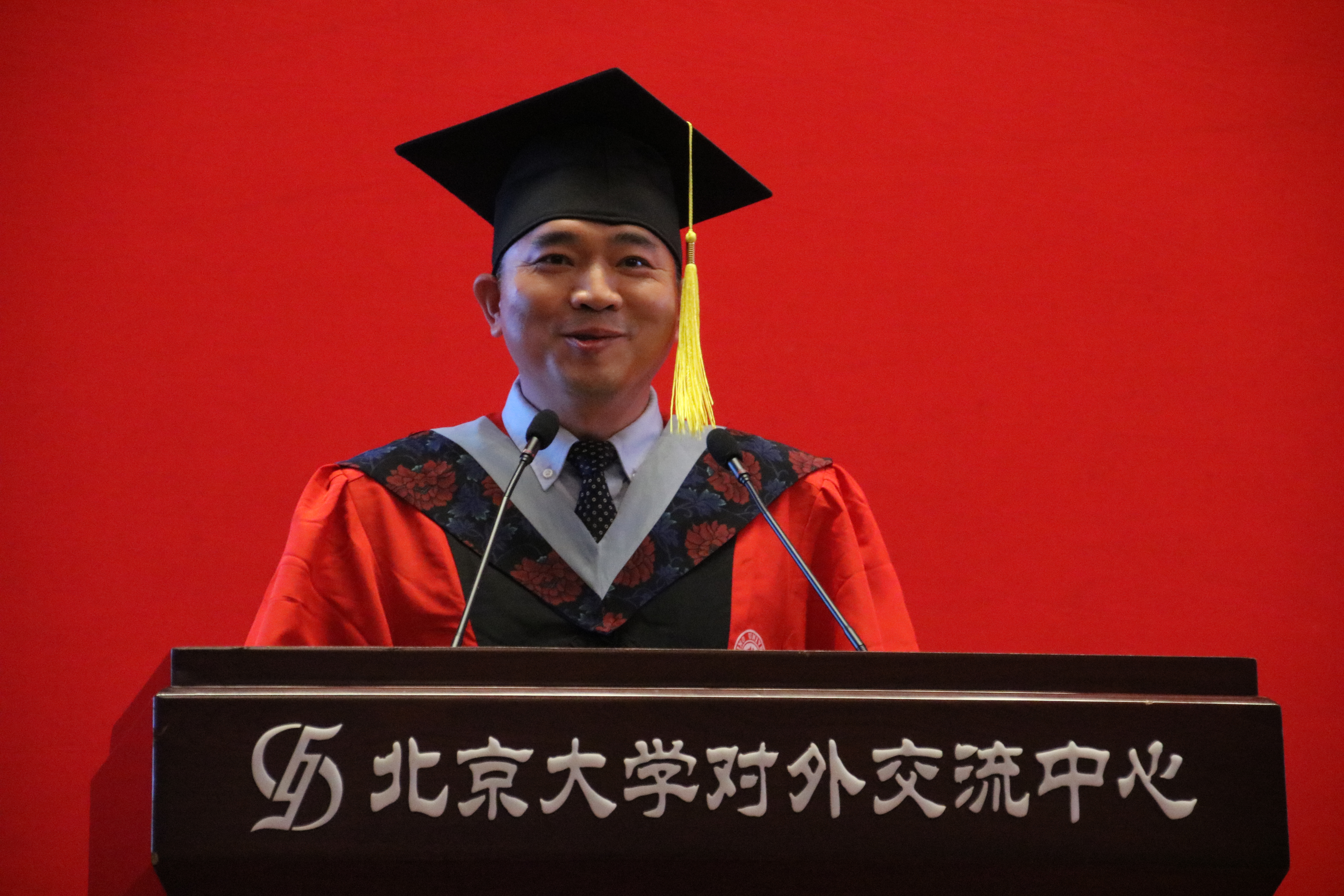 典礼开场的毕业纪念视频述说着同学们在北大最喜欢的、最自豪的、最难忘的事情,并向学院和学校献上最真挚的感谢与最衷心的祝福。毕业班班主任的寄语、嘱托与当年129合唱的旋律,最后凝结为一句“毕业快乐,前程似锦”。