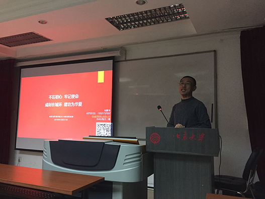 刘耕年老师的知识讲座以“成材在城环,建功为华夏”为主题,意在勉励同学们,尤其是初入北京大学的同学们好好学习,积极奋斗,为党和国家的事业贡献自己的力量。随后,刘耕年从习近平总书记在2018年5月2日考察北京大学过程中发表的重要讲话开始,强调了“立鸿鹄志,做奋斗者”对于北大青年学子的重要性和必要性。他希望,各位同学作为新时期的积极分子,能够积极、认真地参与党课的学习和专业课程的学习,在建立完善的知识体系、提升认识水平的同时树立起坚强的理想信仰,能够扎根中国大地,面向世界、面向未来。