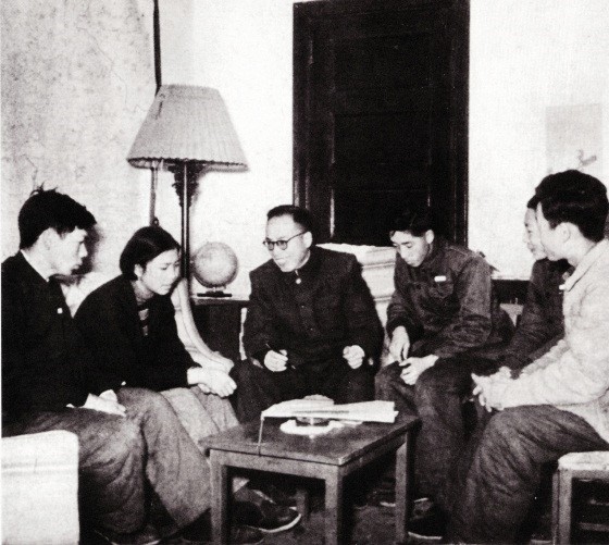 侯仁之先生在自家书房指导1954级学生科研小组(1956年)