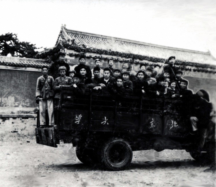 1954级学生乘北京大学校车赴十三陵实习(1954年11月)