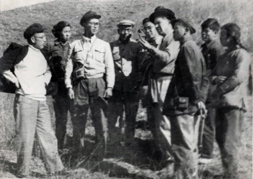 地质地理系师生在西山寨口附近考察(1957年)