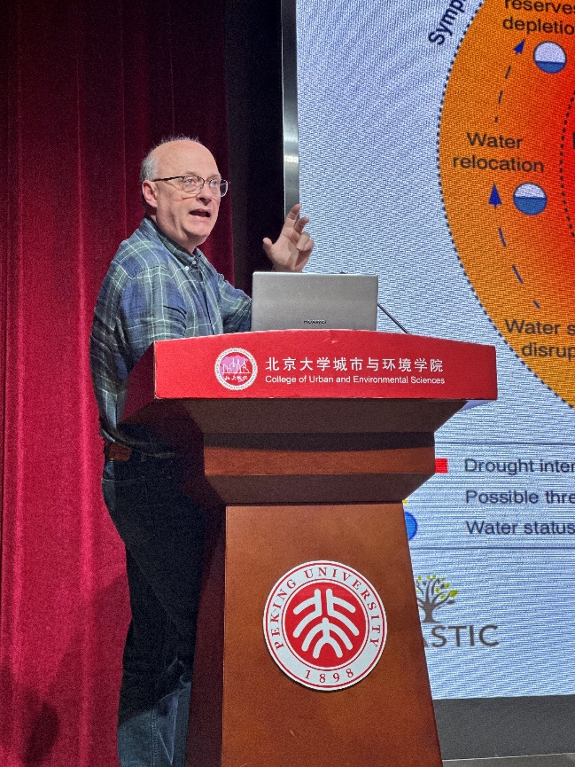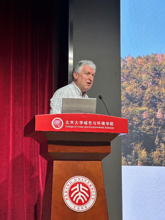 Maurizio Mencuccini教授以“Physiological determinants of tree and forest resilience”为题进行报告,系统地介绍了其在森林韧性方面的工作,基于土壤-植物-大气连续体框架,重点从植物水力学的角度分析了树木功能性状对干旱条件下森林韧性的影响,并通过尺度上推,创新性地识别了区域尺度木本植物水力学风险,在报告最后,展望了近红外技术在识别水力学性状上的应用前景。