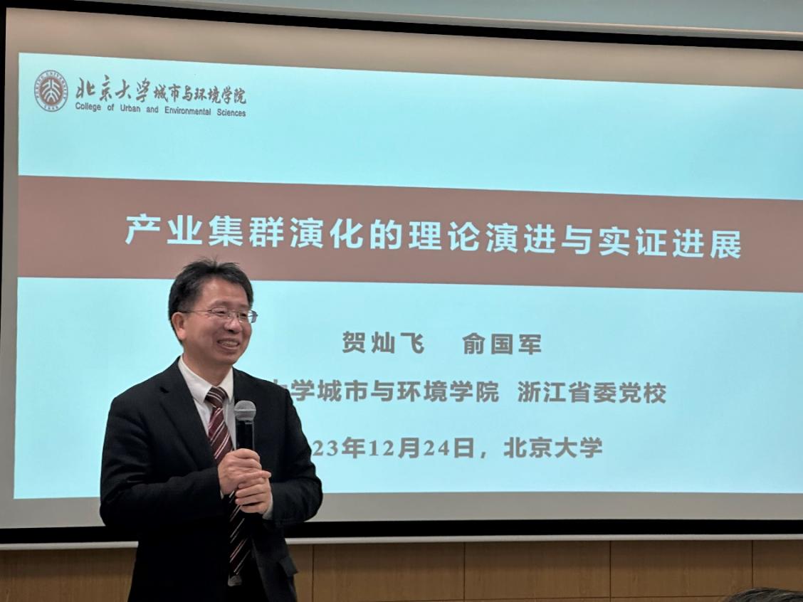上午10时,产业集群演化学术研讨会由北京师范大学地理科学学部潘峰华教授主持。孙久文、张可云、赵作权、贺灿飞四位专家面向学科发展前沿,从多个角度、不同主题分享了产业集群领域的最新进展和深刻思考。研讨会聚焦于产业集群的演化过程,深入剖析了不同区域不同行业的集聚现象,并通过多维度的学术观点揭示了产业集群对区域经济发展的深远影响。与会专家先后分享了在实际应用中取得的研究成果,为促进我国产业升级、区域协同发展提供了理论支持和实践指导。