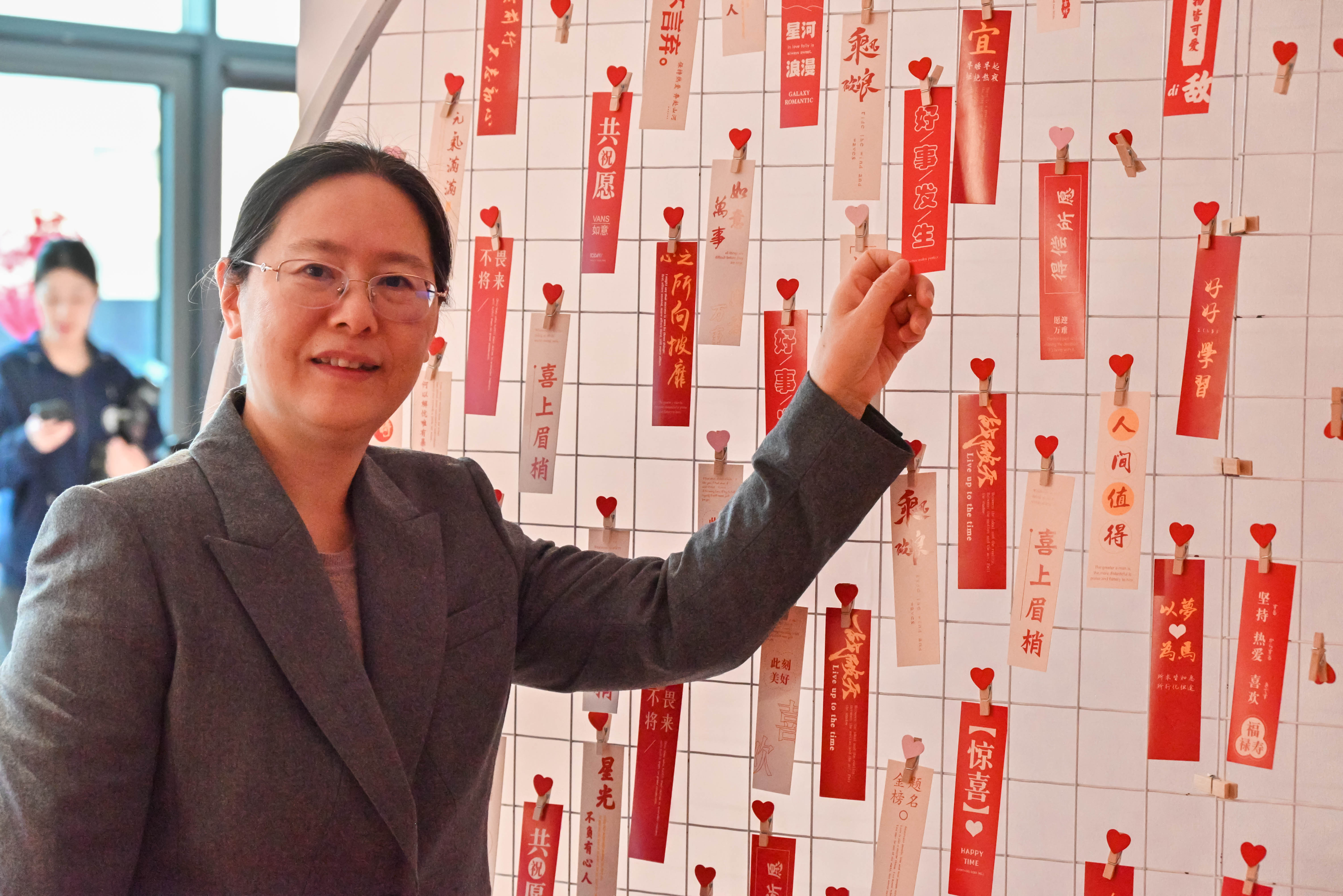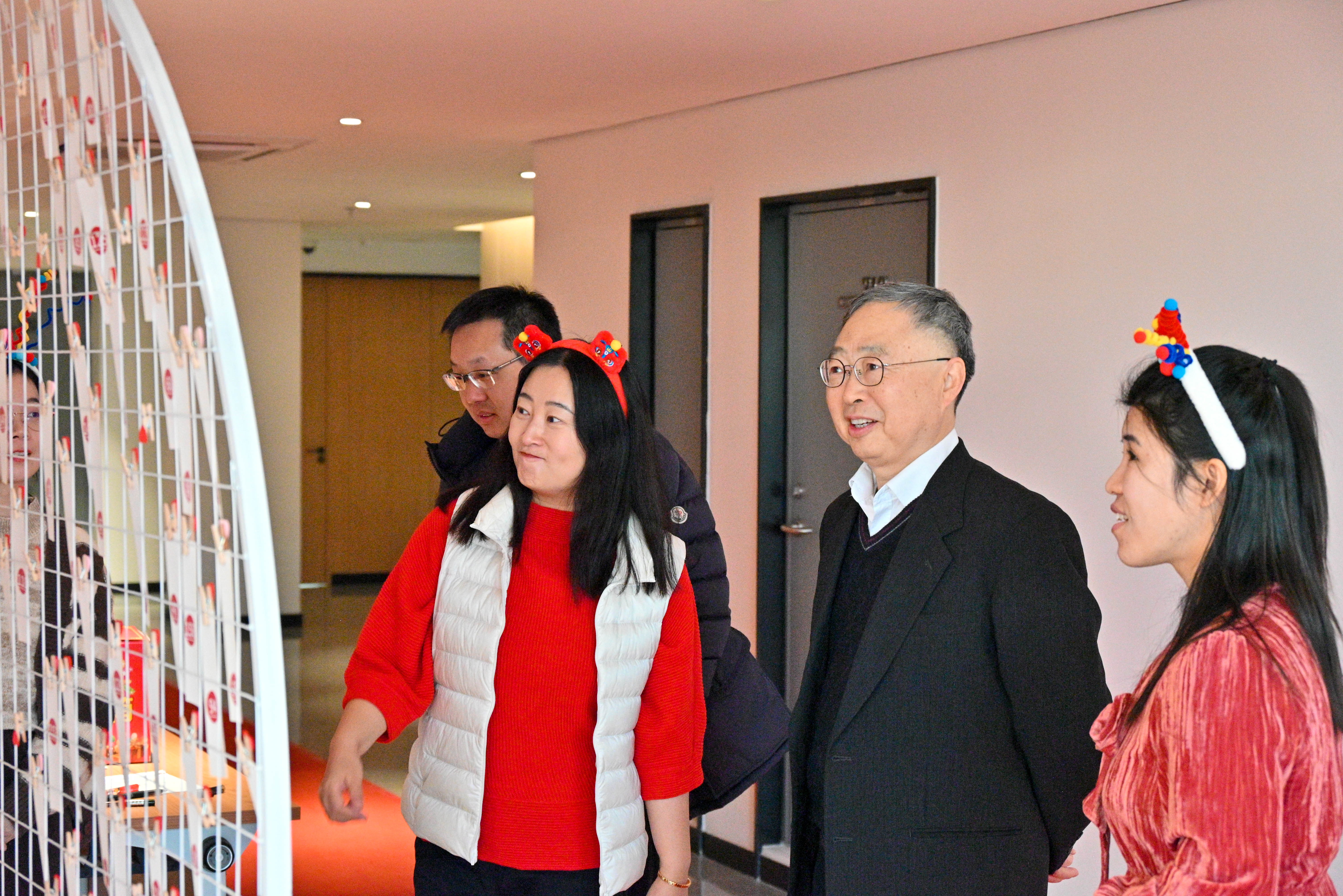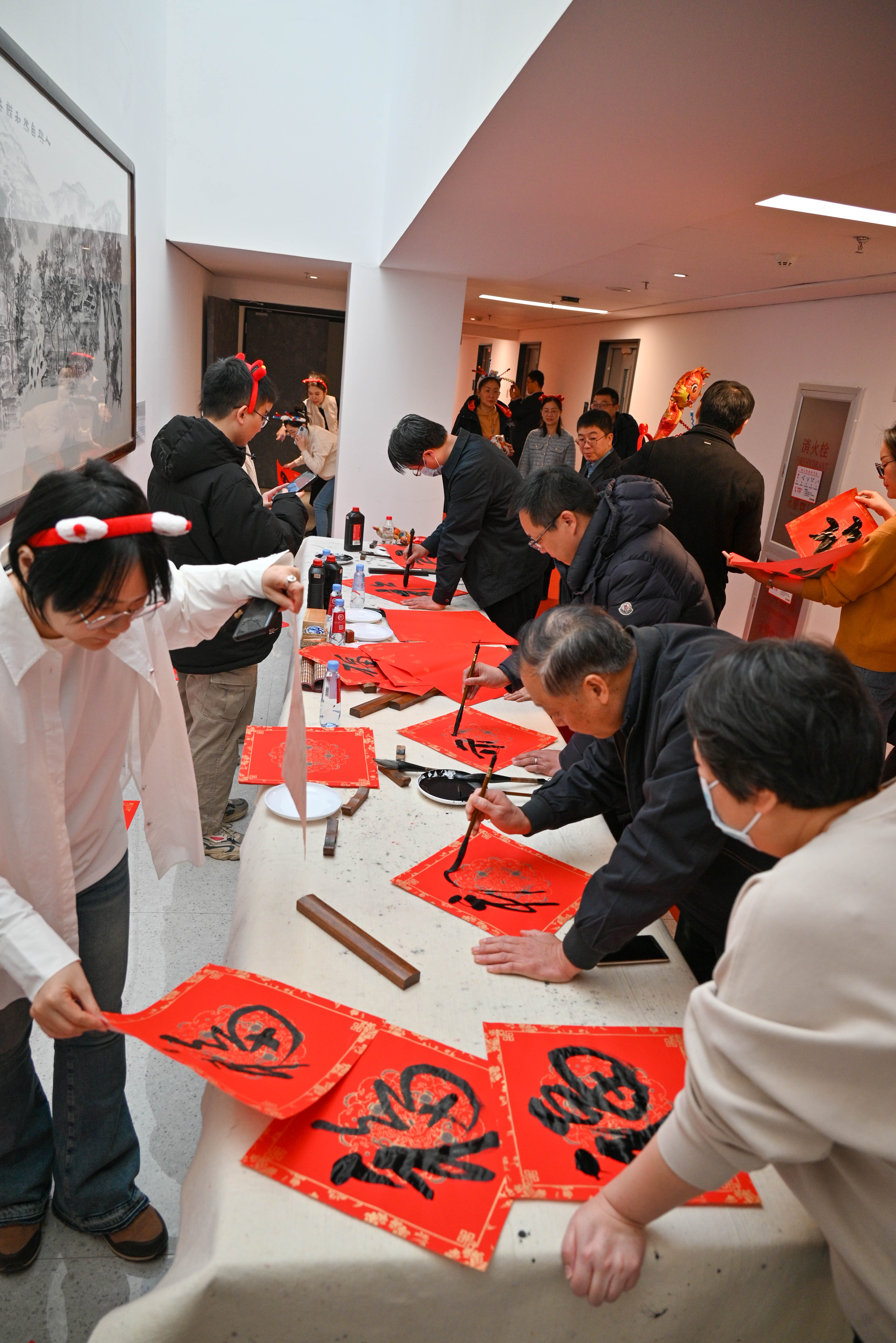 大会开始前,是“新年红毯秀,新春送福字”环节。12日早上,城环大楼处处张灯结彩,老师们身着盛装前来参会,在报告厅前的红毯上留下2024年新春最帅的影像。冯长春、冯健、周丰等老师现场挥毫泼墨,书写“福”字和春联送给大家。会场内外欢声笑语,洋溢着浓浓的节日氛围。