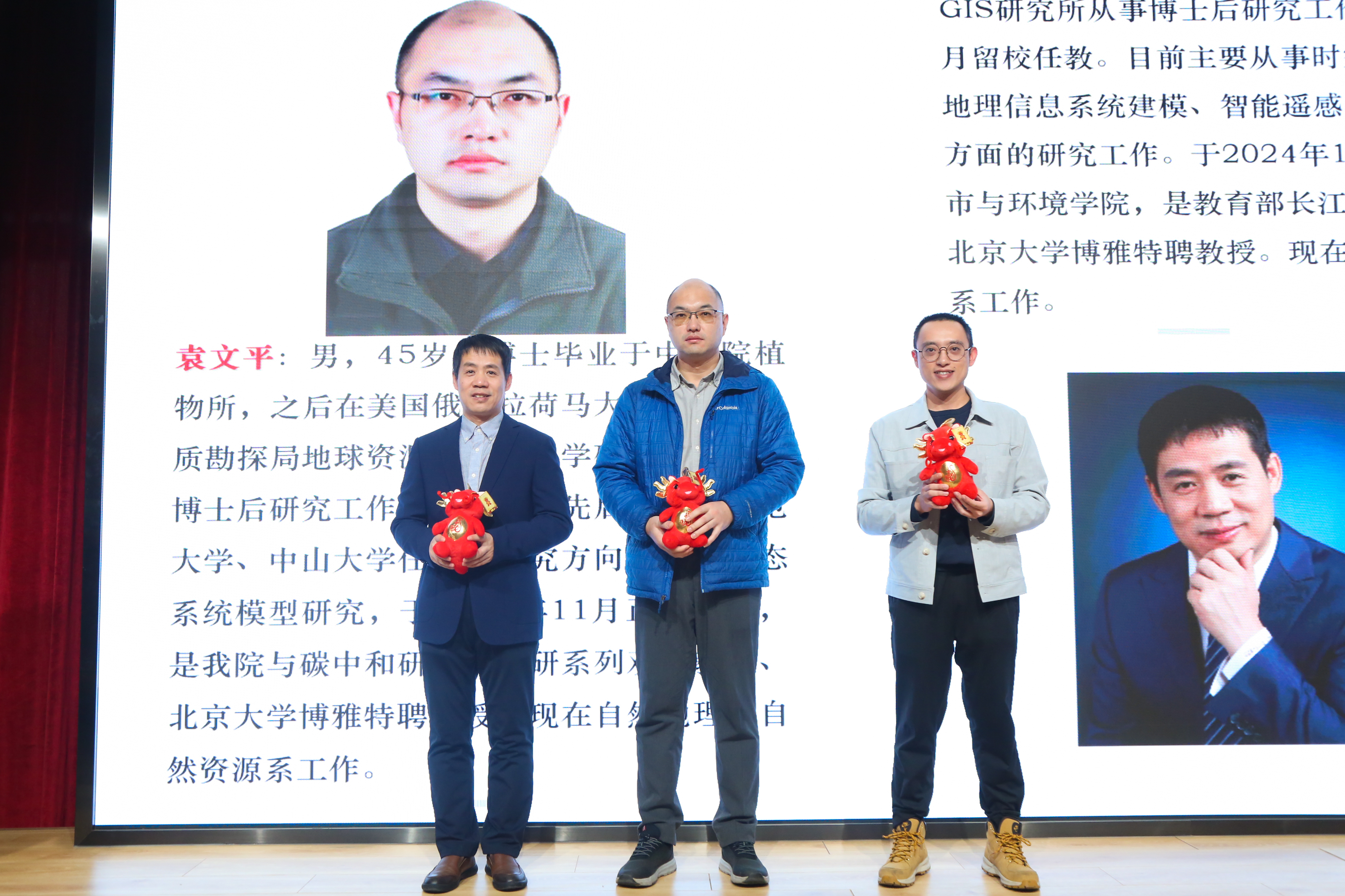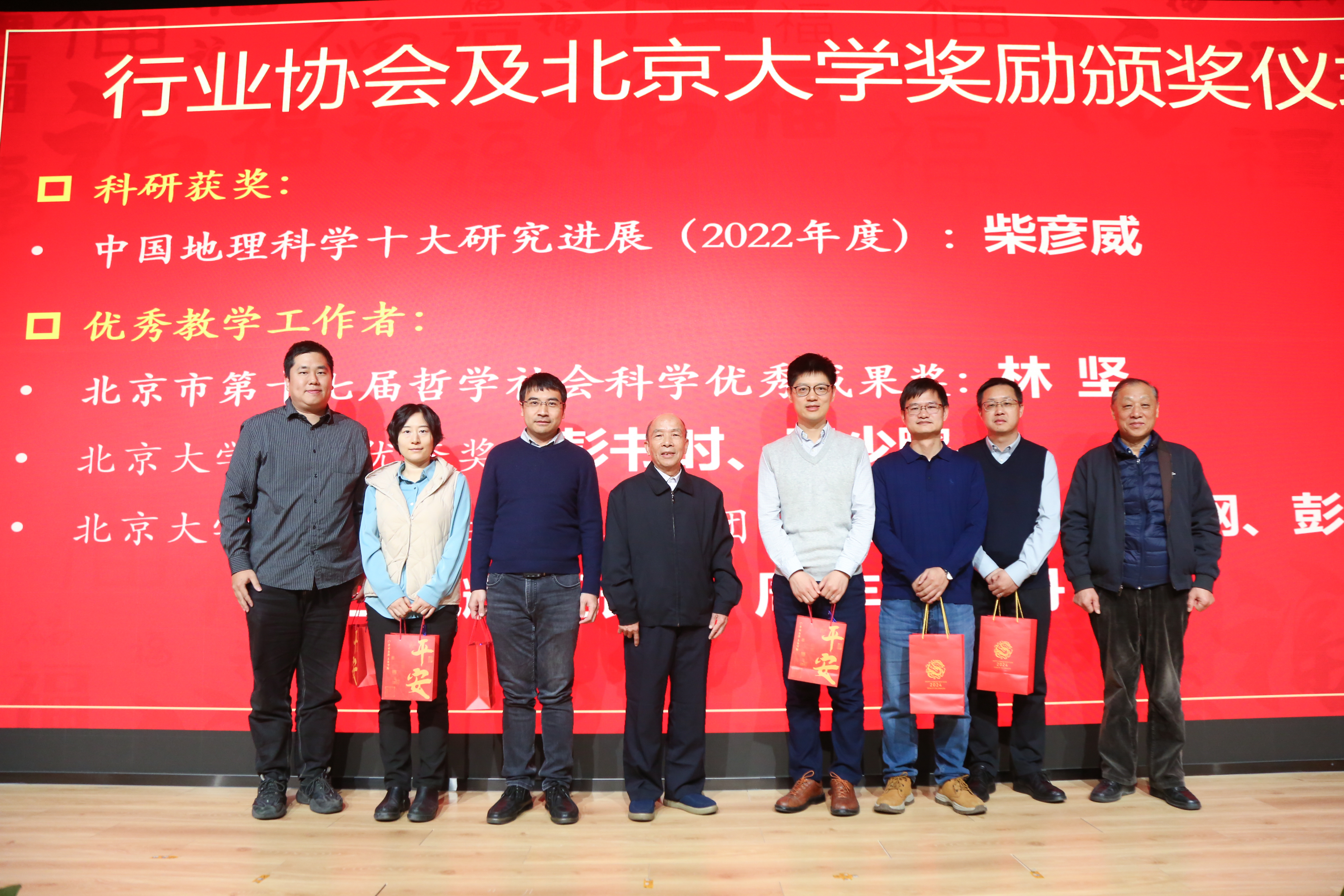 他从北大地理学科建立70周年大会的盛况出发,指出校领导对大会的重视、网络媒体的热烈反响是对学院发展和大家努力所取得成绩的最好肯定。随后,他从队伍建设、学科建设、人才培养、学术成果、交流合作等方面回顾了学院过去一年的优秀成绩。2023年,学院引培并举,引进3位高水平人才,2位教师获批“杰青”项目,全力打造能引领、响应和服务国家重大战略需求的高质量师资队伍;在原有优势学科的基础上,申报两项新专业:环境健康与国土空间规划,同时拟重建地理信息科学系,为各学科提供技术支撑,展望AI时代的大数据空间分析;学院坚持以学生为中心的培养理念,积极推动教材建设、教学改革以及拔尖人才培养工作,开创了将思政教育与野外实习融合的宝贵经验,开辟了俄罗斯、新加坡“一带一路”国际实习路线,受到校领导高度肯定;学院过去一年学术成果丰富,质量位于全国第一梯队,同时学术平台建设稳步开展,在5个国家级教学科研平台、8个省部级平台外,2023年“滇中高原生物多样性与地球关键带”自然资源部野外科学观测站获批成立;在交流合作方面,继续举办“北京大学地理•环境讲坛”“北京大学生态讲坛”“北京大学规划论坛”三大学术讲坛,举办“博雅讲坛”系列学术讲座,打造高端学术交流平台。报告的最后,贺灿飞对全体教职工一年来的辛勤付出表示感谢,鼓励大家在新的一年踔厉奋发、勇毅前行,并祝各位老师新年快乐。