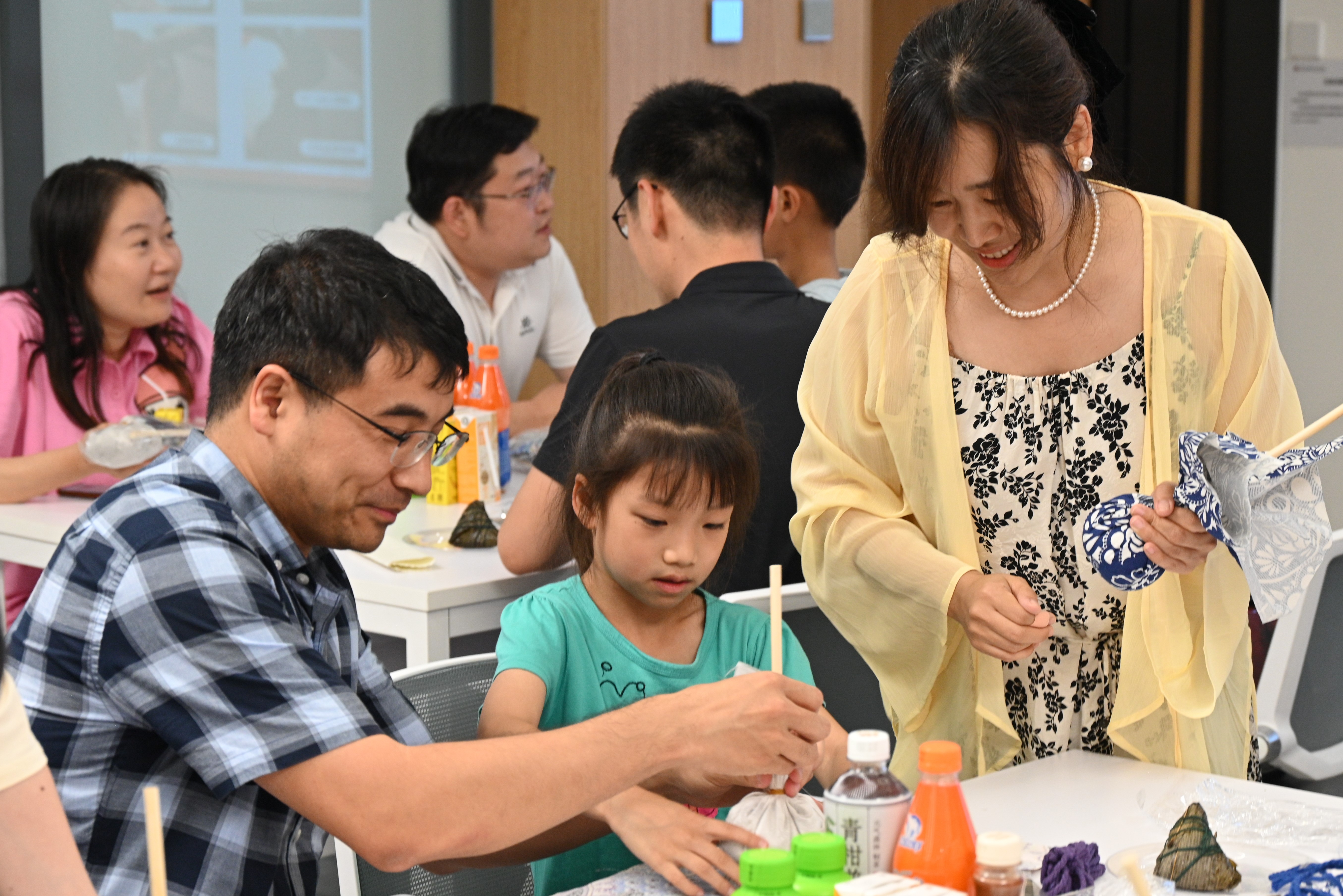 老师们品尝粽子并制作艾草锤