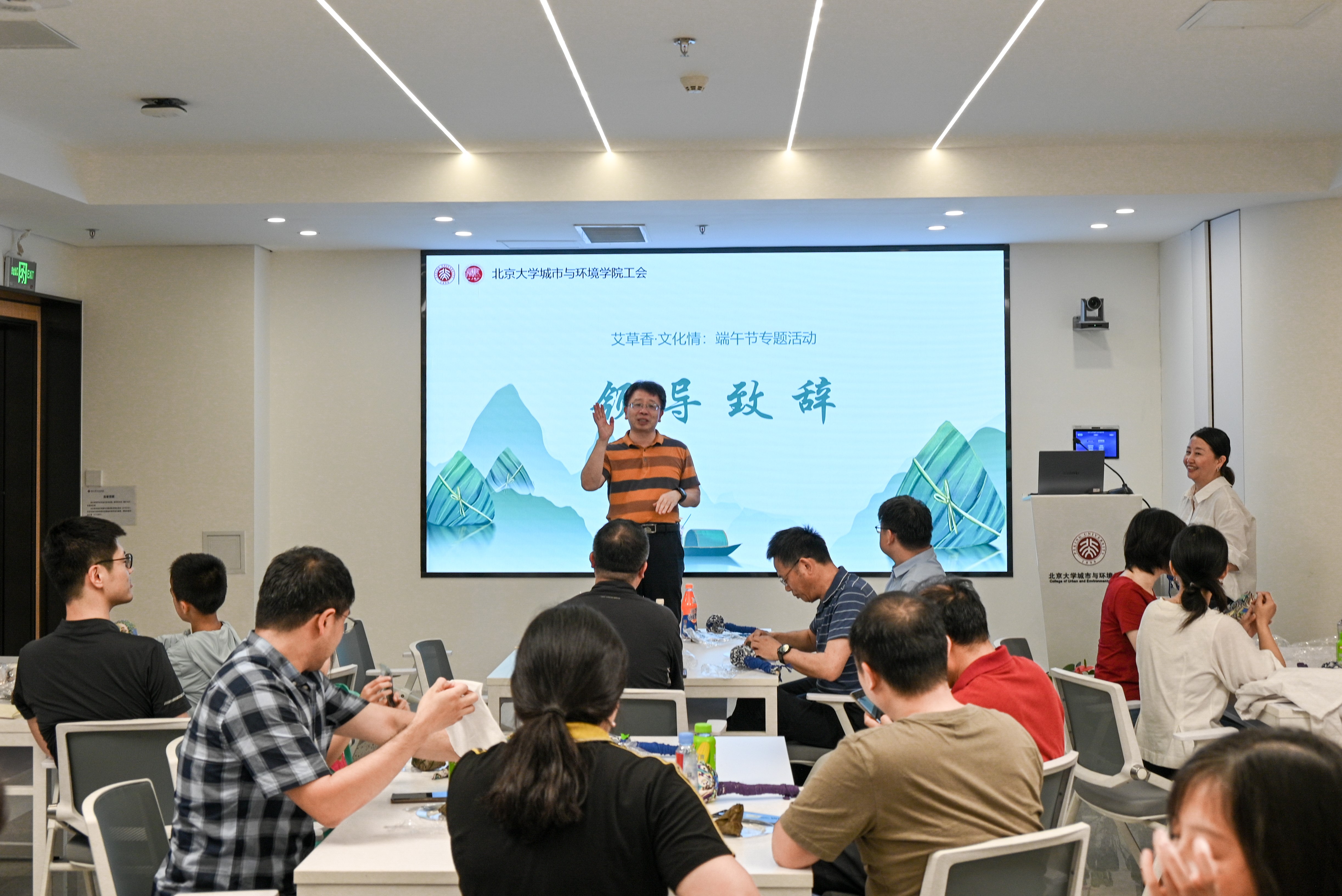 院长贺灿飞为活动致辞,他向老师们送上真挚的节日祝福,认为这是一次美好地相聚,希望每一位老师都能尽情领略传统文化的魅力,放松身心去体验节日的温馨与喜悦。同时他也希望通过活动增进教师之间的交流,促进学院文化建设,大家共同度过一个难忘的端午佳节。