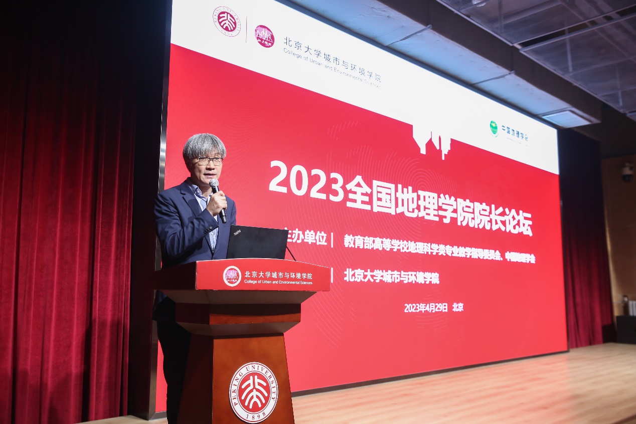 14时,院长论坛正式开始。王博在致辞中指出,近几十年,地理学在城镇化、城乡发展、气候变化、环境变化、生态系统、人地关系等关系国计民生和可持续发展的诸多领域作出了重大贡献。在国家生态文明建设、人才强国建设不断推进的新时代背景下,全国高等学校地理学院院长汇聚北大,探讨如何立足国际科学前沿、面向新时代国家和区域高质量发展需求,建设世界一流地理学科、培养高水平专业人才,是一件非常有意义的事情。他希望本次会议能够为地理学发展汇聚智慧力量。