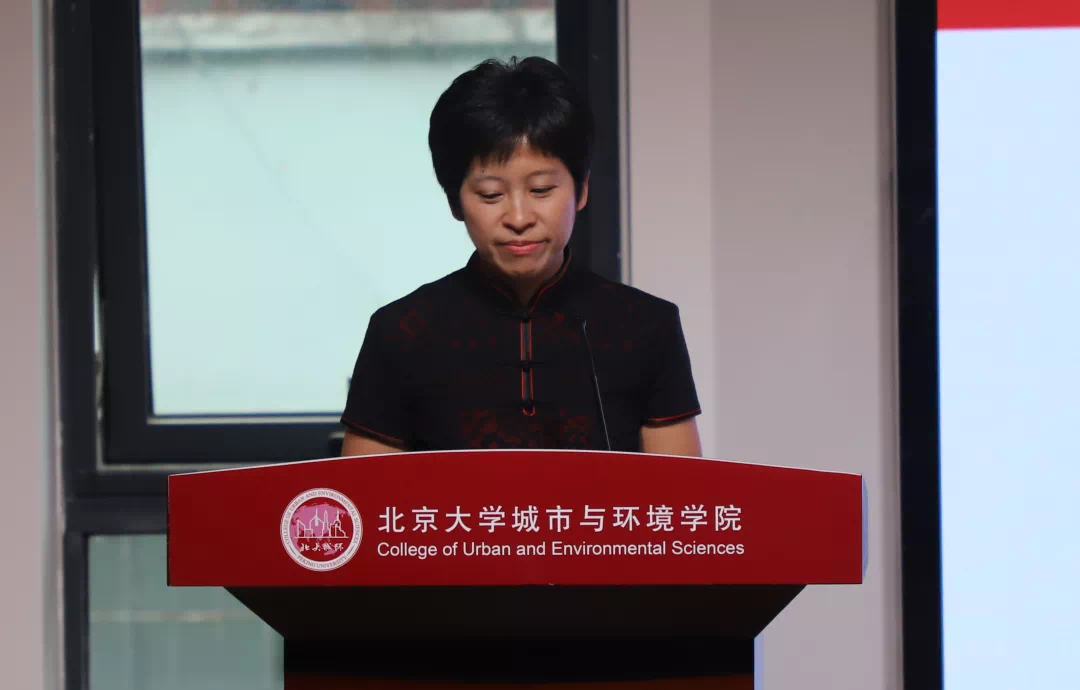 随后,学院2001级校友,自然资源部国土空间规划局主题功能区处二级调研员谢秀珍女士作为院友代表致辞。她首先对学院的邀请表示了感谢,接着她用 “包容”两字概括了城环对她人生的影响,提出待人待物应保持一颗包容之心,接纳他人悦纳自己,同时强调在学习、生活乃至于未来的工作中同学们应该具有更广阔的视野,更高远的格局。最后她希望同学们用心享受校园生活,怀揣北大城环人的包容和气度,服务社会,创造未来。