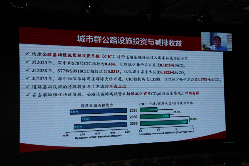 北京大学赵鹏军教授以“货运减排路径研究”为题发表演讲。他认为,增加电动卡车的数量可以显著减少碳排放。然而,这一举措也面临着成本高等方面的挑战。另外,他还指出,分散的产业布局可能会导致更多的火车运输需求,从而增加碳排放。最后,他强调,解决道路货运碳排放是一个系统性问题,需要综合考虑城市规划、区域规划和整体规划。