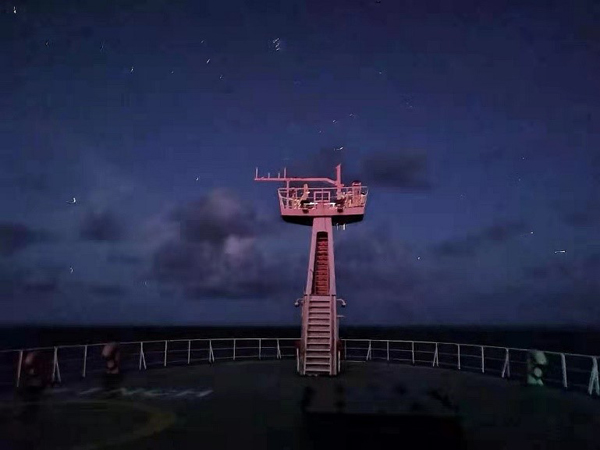 春生夏荣,秋收冬藏,国人的快乐莫过于秋收的喜悦和年终的回首,而此刻仍身在太平洋的我们竟能同时得到两种快乐的眷顾,甫过冬至,水样满舱,清点一番,不下千升。千升海水,来之不易,她们是我们在这片海上“做站”的见证,也是这片汪洋给我们的“一粟”纪念。西归的天际云霞齐飞,船尾的白浪随波隐没于极目水天夜色之中,思绪遄飞,禁不住回到了二十天前的那个夜晚。