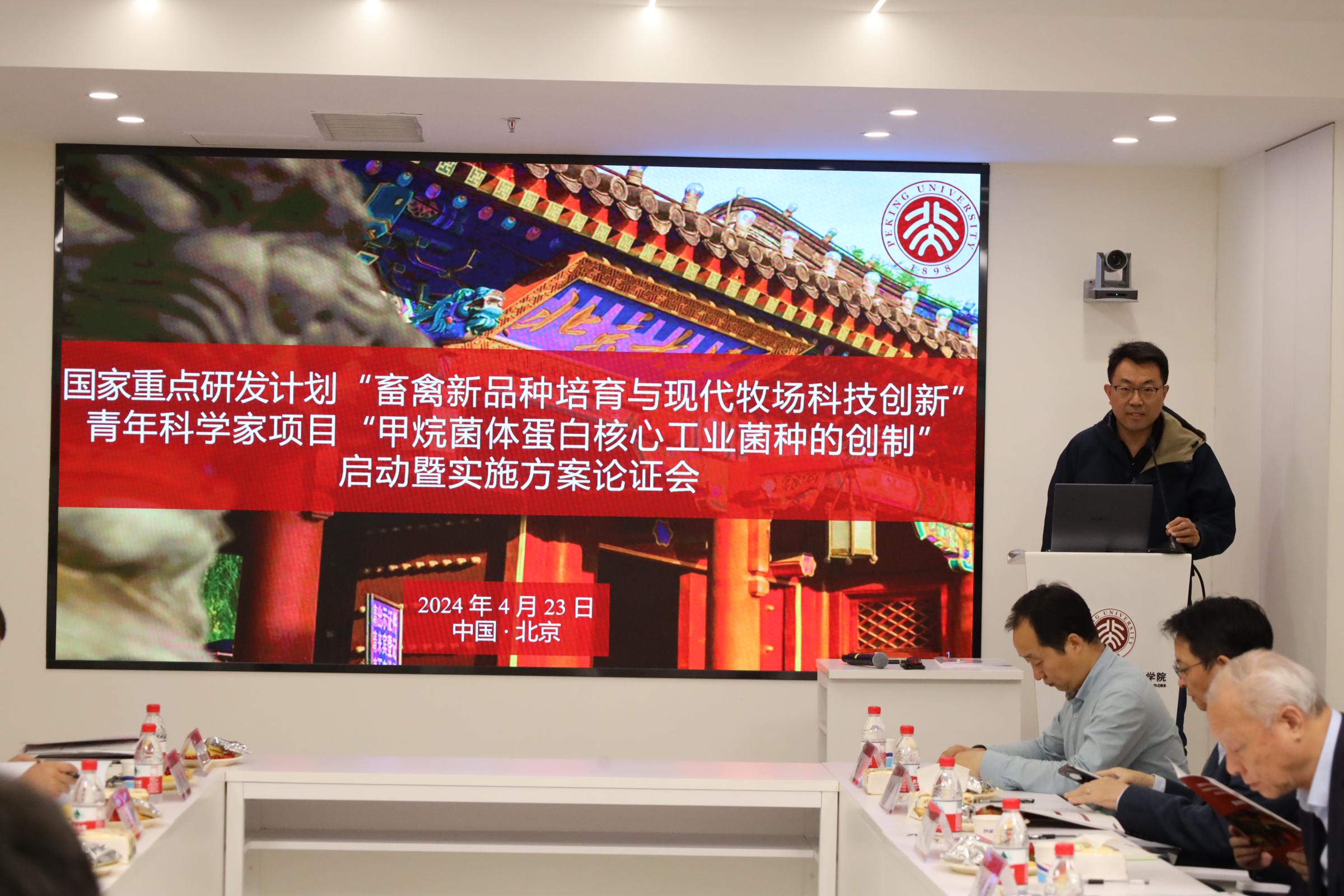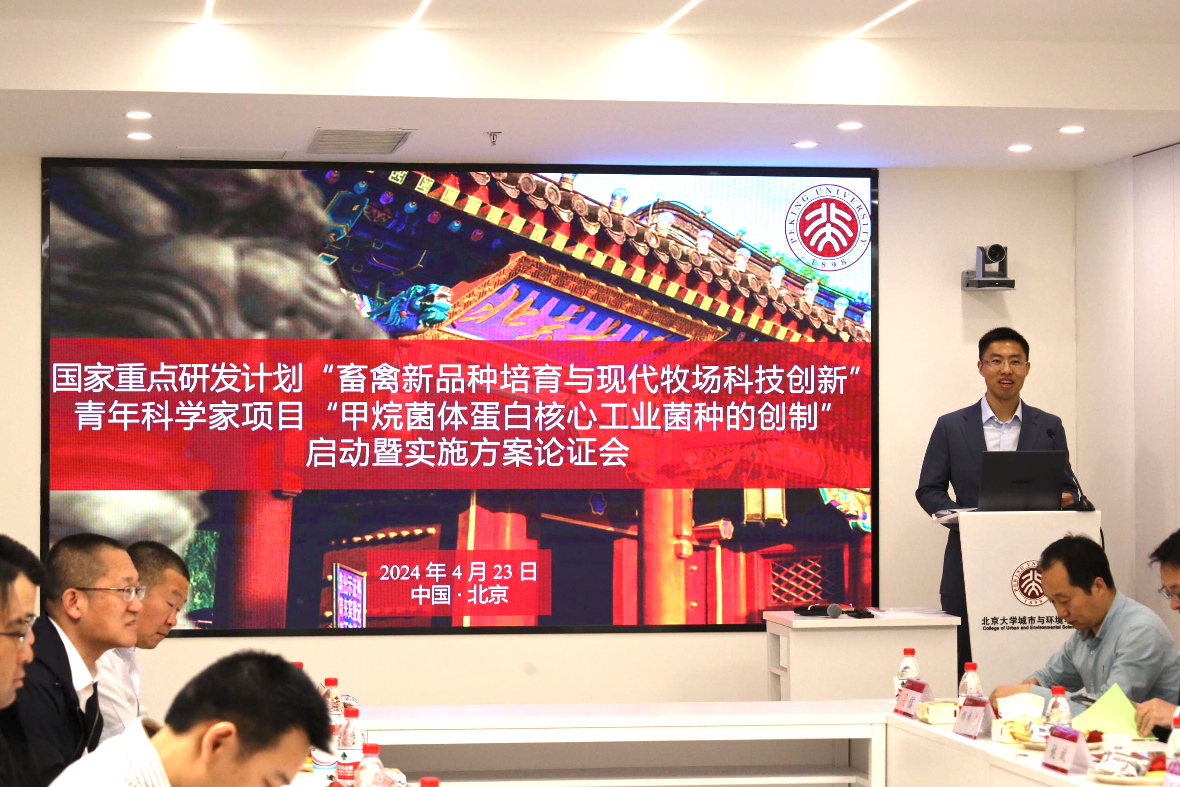 2024年4月23日,香港六合彩开奖直播 喻航研究员主持的国家重点研发计划“畜禽新品种培育与现代牧场科技创新”重点专项“甲烷菌体蛋白核心工业菌种的创制”项目启动暨实施方案论证会在北京顺利召开。农业农村部中国农村技术开发中心项目专员蒋立、北京大学科研部副部长张琰、北京大学科研部主任廖日坤、香港六合彩开奖直播 院长贺灿飞出席了本次会议。会议邀请了7位项目专家和4位用户代表,包括中国农业大学李德发院士、中国农业大学谯仕彦院士、中国农业科学院北京畜牧兽医研究所姚斌院士、四川农业大学陈代文教授、清华大学邢新会教授、北京大学陆雅海教授、中国科学院天津工业生物技术研究所吴信研究员、通威农业发展有限公司副总经理和技术总监张璐博士、项目组长刘匆博士、广西扬翔股份有限公司技术总监谭家健博士、北京九州大地集团技术总监王岗博士。此外,还有项目负责人、项目骨干等20余人参加了会议。