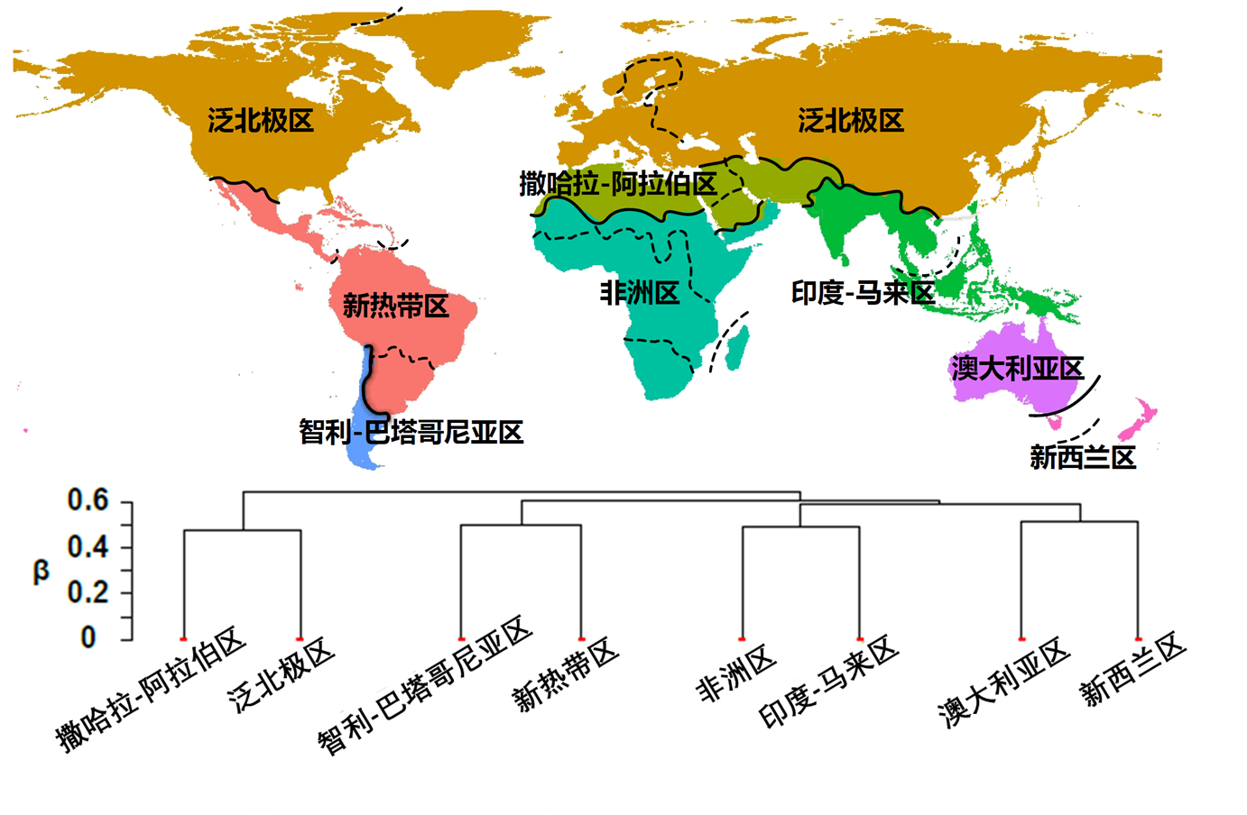 植物区系是指一定时间和空间内所有植物的组合。一个区域的植物区系物种组成具有统一性,而不同地区间区系的物种组成具有明显区别。植物区系区划则是按照物种组成将相似的区系合并,形成不同层次的植物地理区。这些植物地理区反映了植物的演化及其对地质和气候变化历史的响应,因此,对植物区系进行区划,一方面可以为揭示物种多样性分布格局的形成与维持机制这一经典的宏观生态学问题提供明确的空间框架,另一方面也可为生物地理学、系统发育地理学、生物多样性保护地规划以及区域环境演变等研究提供基础数据。从19世纪初期开始,以J. F. Schouw (1789-1852)、Adolf Engler(1844-1930)、Ronald Good (1896 -1992)以及我国植物学家吴征镒(1916-2013)为代表的植物学家们根据他们对植物区系特有性的理解,开展了一系列世界和区域性植物区系区划的先驱性工作。目前最广泛使用的植物区系区划图主要是苏联植物学家塔赫他间(Armen Takhtajan,1910-2009)在1986年更新的植物区系地图。这些经典植物地理区划分多基于地区植物特有性,缺乏对地区内所有植物类群的全盘考虑。随着物种分布和系统发育大数据的积累,近年来越来越多的研究采用定量化的方法,基于物种间的系统发育关系进行植物地理区划分。然而,现有研究多关注区域尺度或特定类群,仍然缺乏全球被子植物的定量植物地理区划分方案,而关于植物地理区之间区系组成差异的驱动因素(历史时期气候变化和板块运动等过程)也仍不清楚。